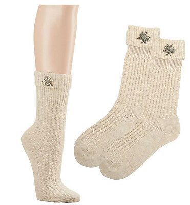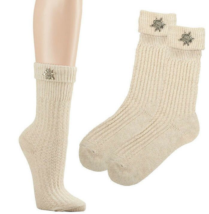 2 Paar Trachtensocken für Damen und Herren, mit Edelweiß Anstecker