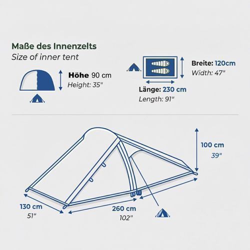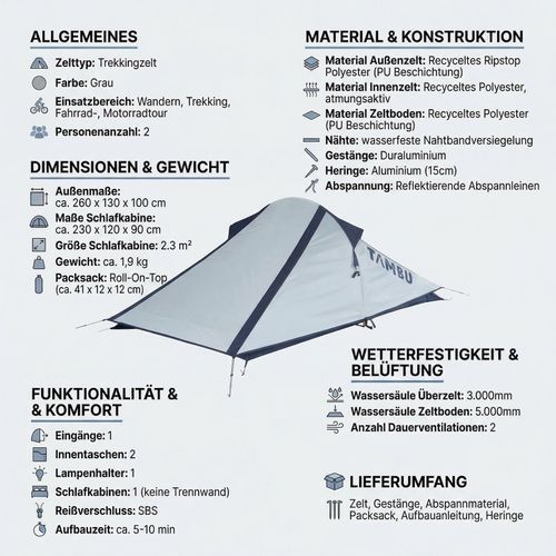 2 Personen Biker Zelt 1,9 KG 3000mm Wassersäule Packmaß 41 x 12 cm