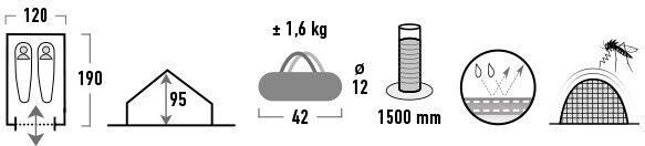 High Peak 2 Personen Minipack Hauszelt 190x120x95 cm 1,6 kg WS=1500 mm High Peak Zelt