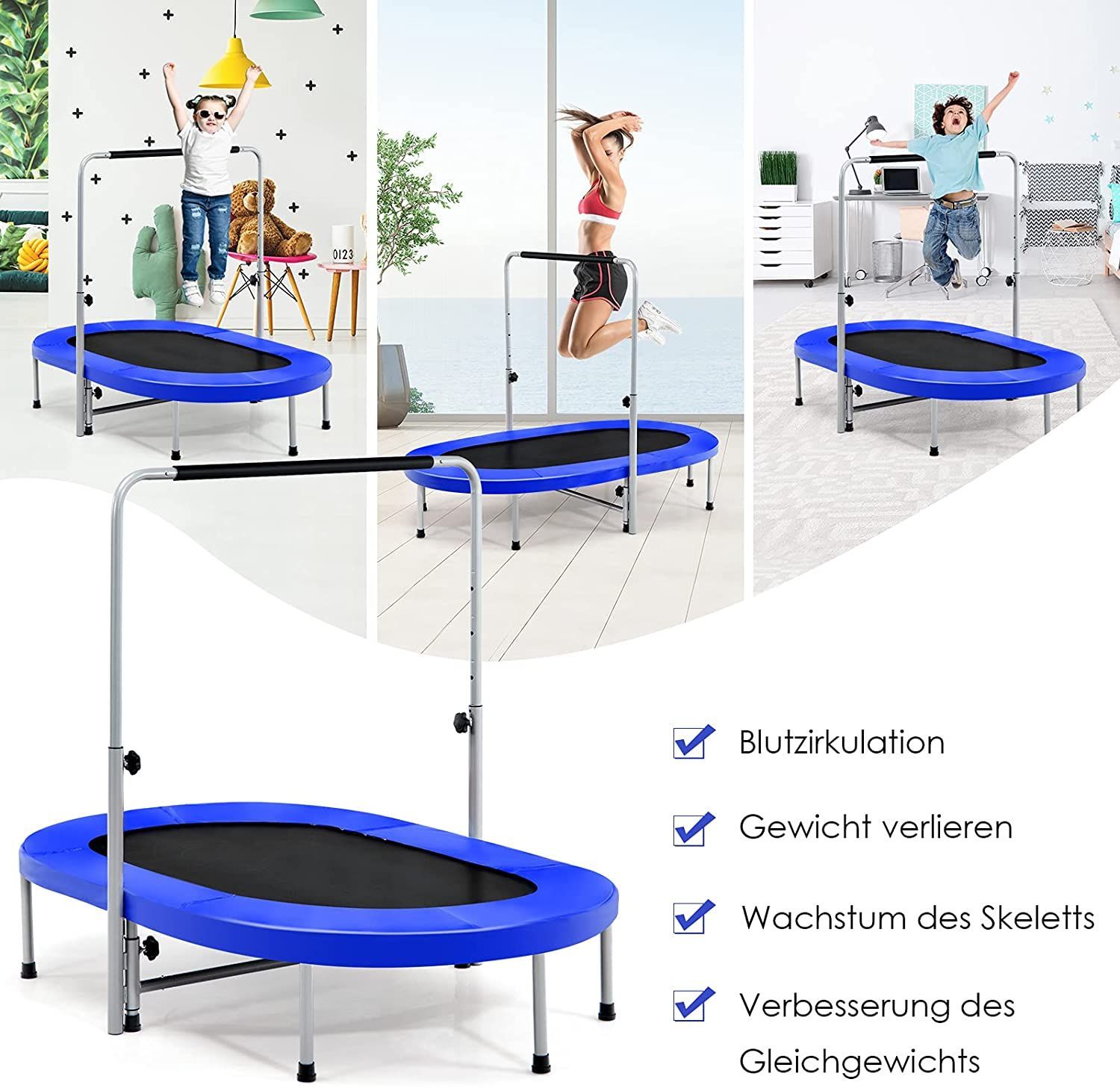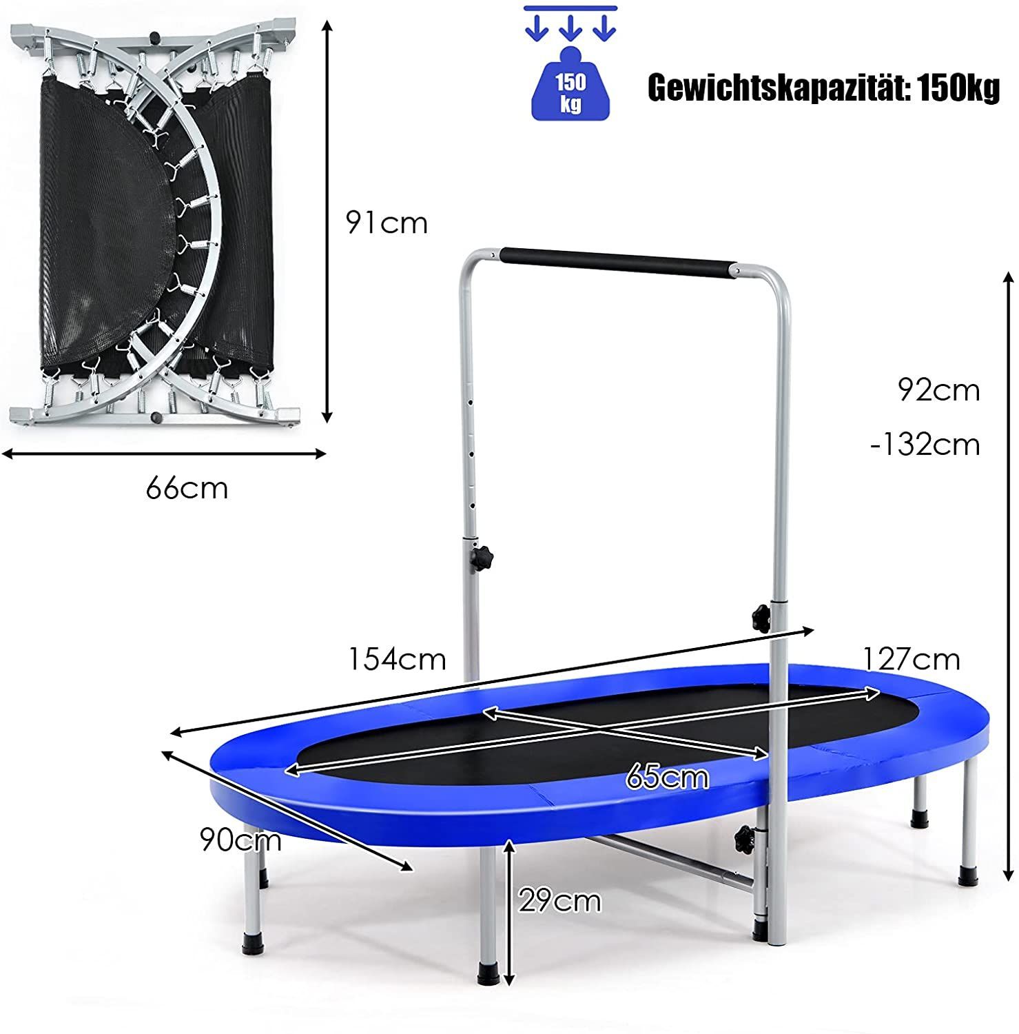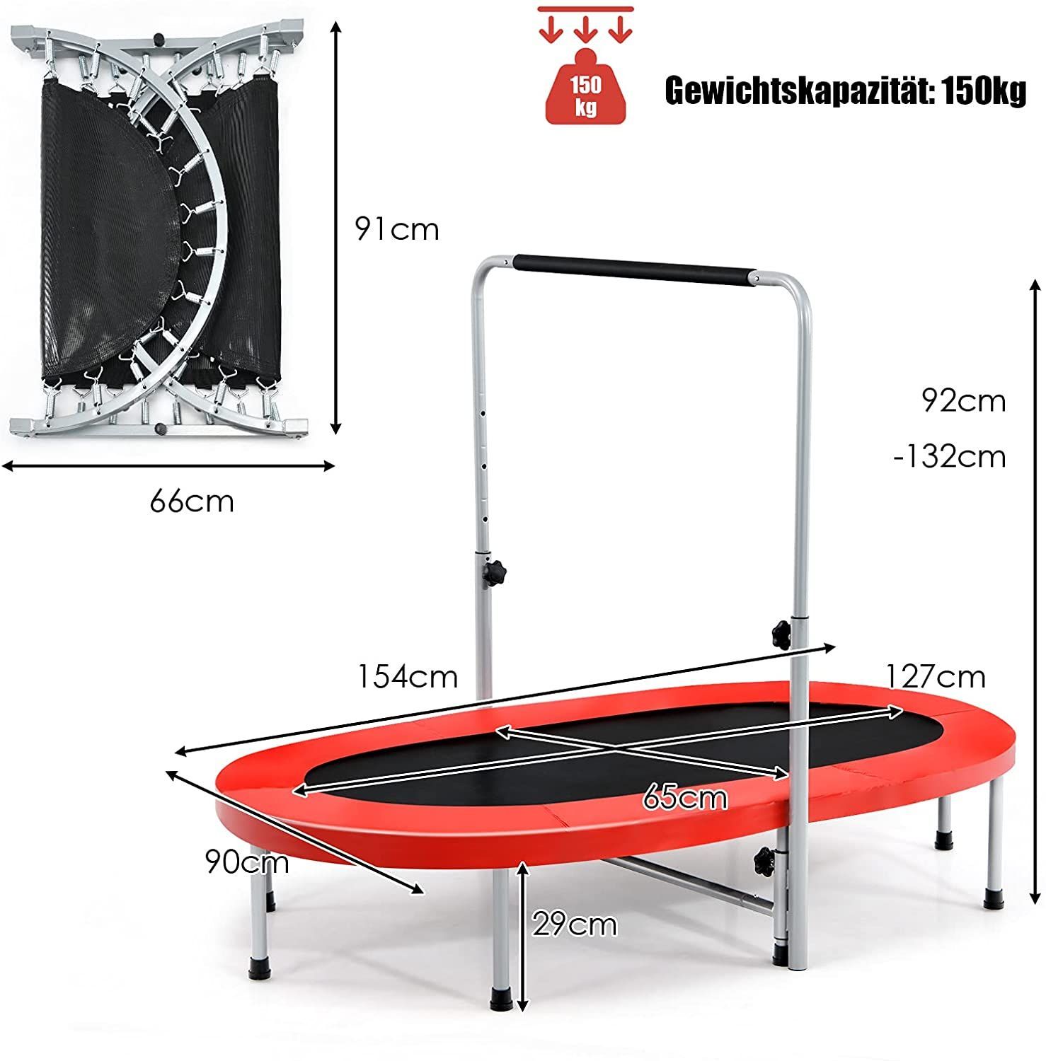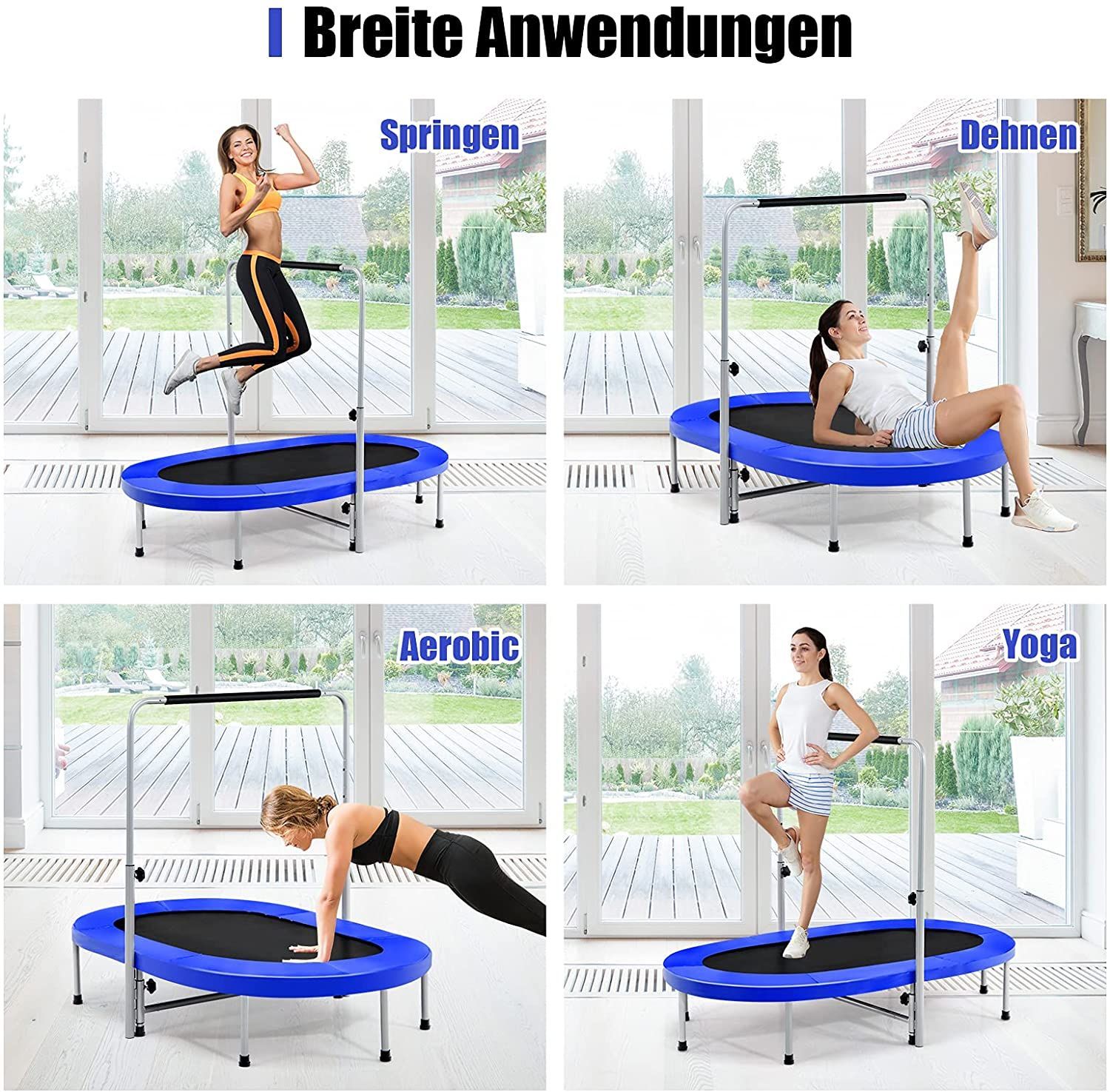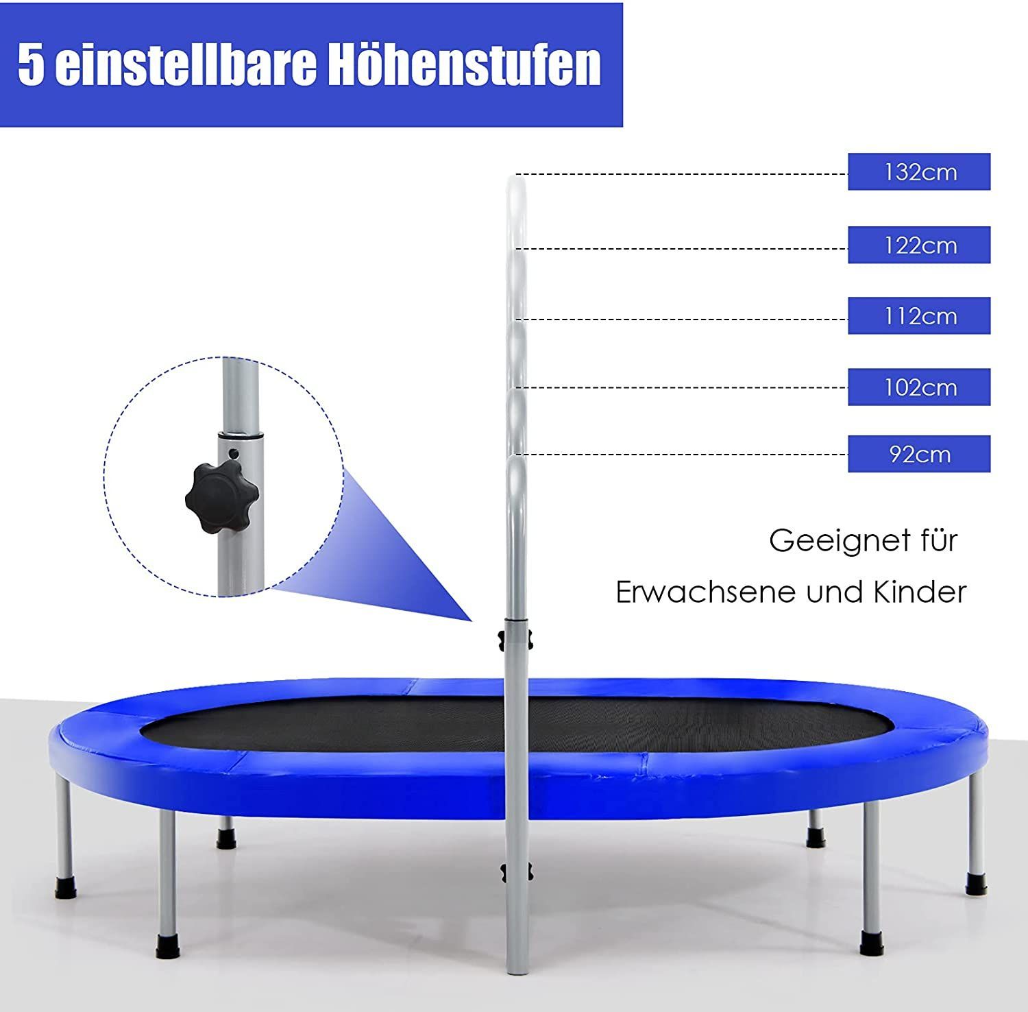 2 Personen Trampolin mit höhenverstellbarm Haltegriff, Mini Trampolin 150kg belastbar