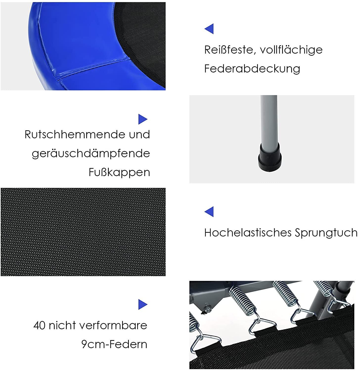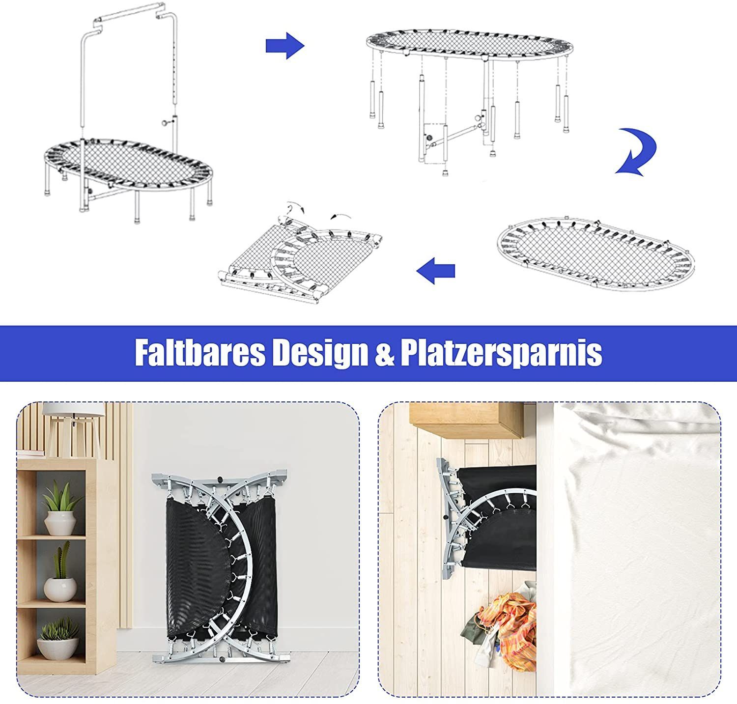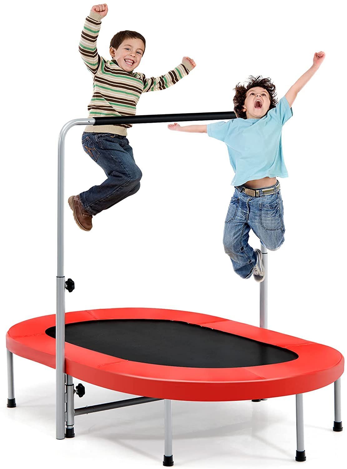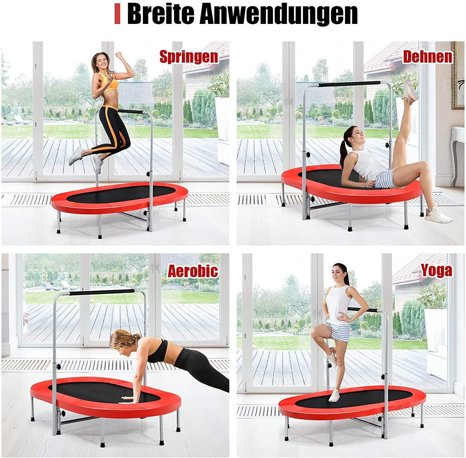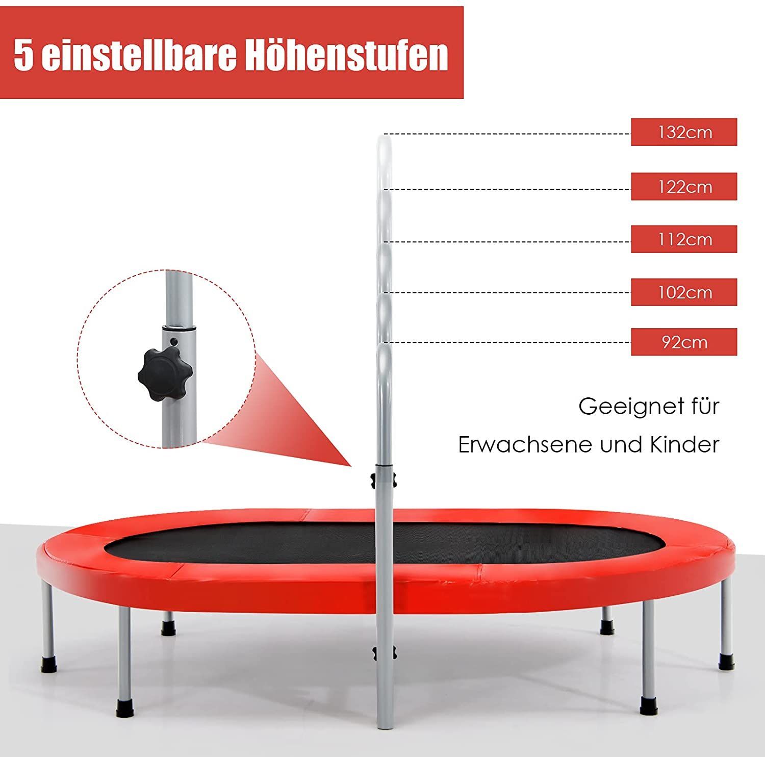 2 Personen Trampolin mit höhenverstellbarm Haltegriff, Mini Trampolin 150kg belastbar