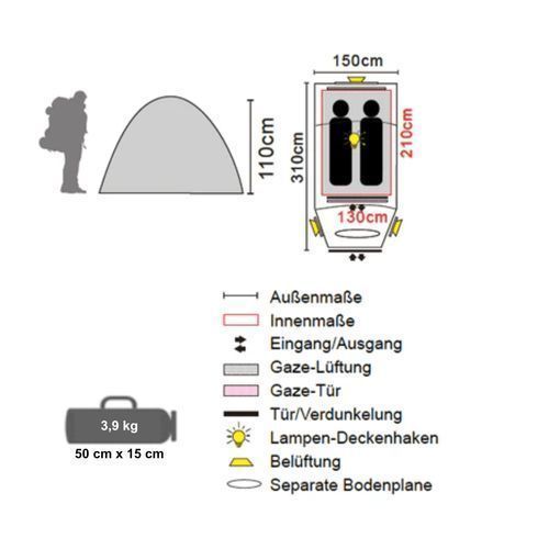 2 Personen Tunnelzelt Trekkingzelt , Back Sky Zelt Camping