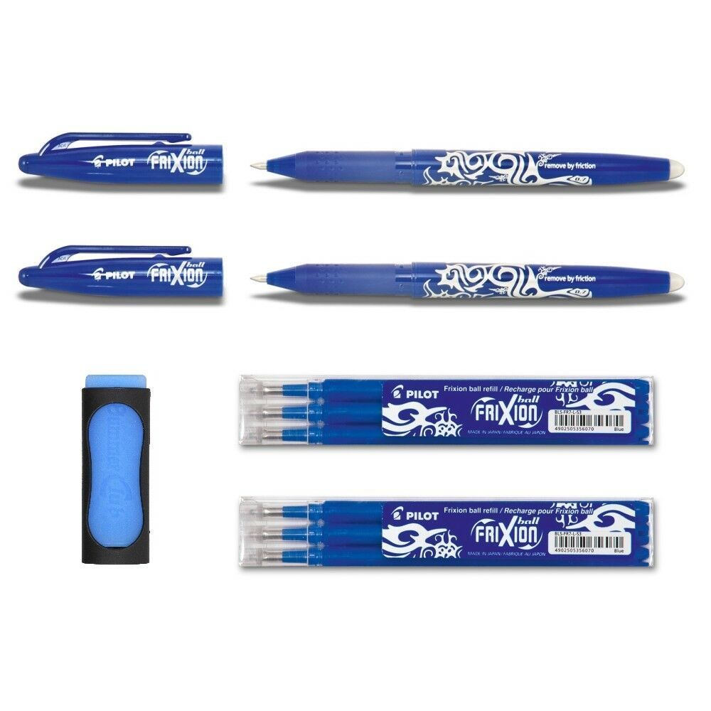 Pilot Pen 2 Pilot Frixion Ball blau + 6 Ersatzminen blau + Radierer als Gratiszugabe