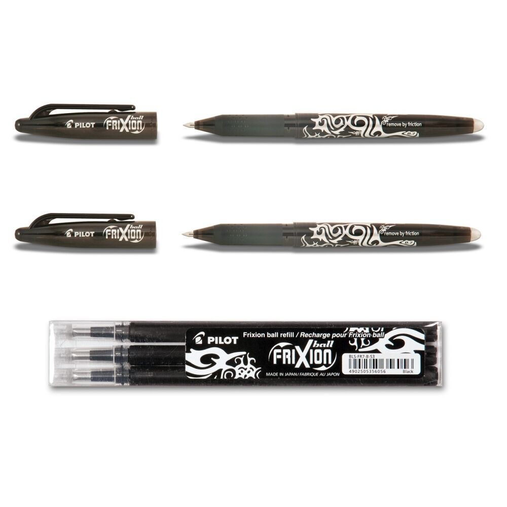 Pilot Pen 2 Pilot Frixion Ball schwarz + 3 Ersatzminen 0.7 schwarz