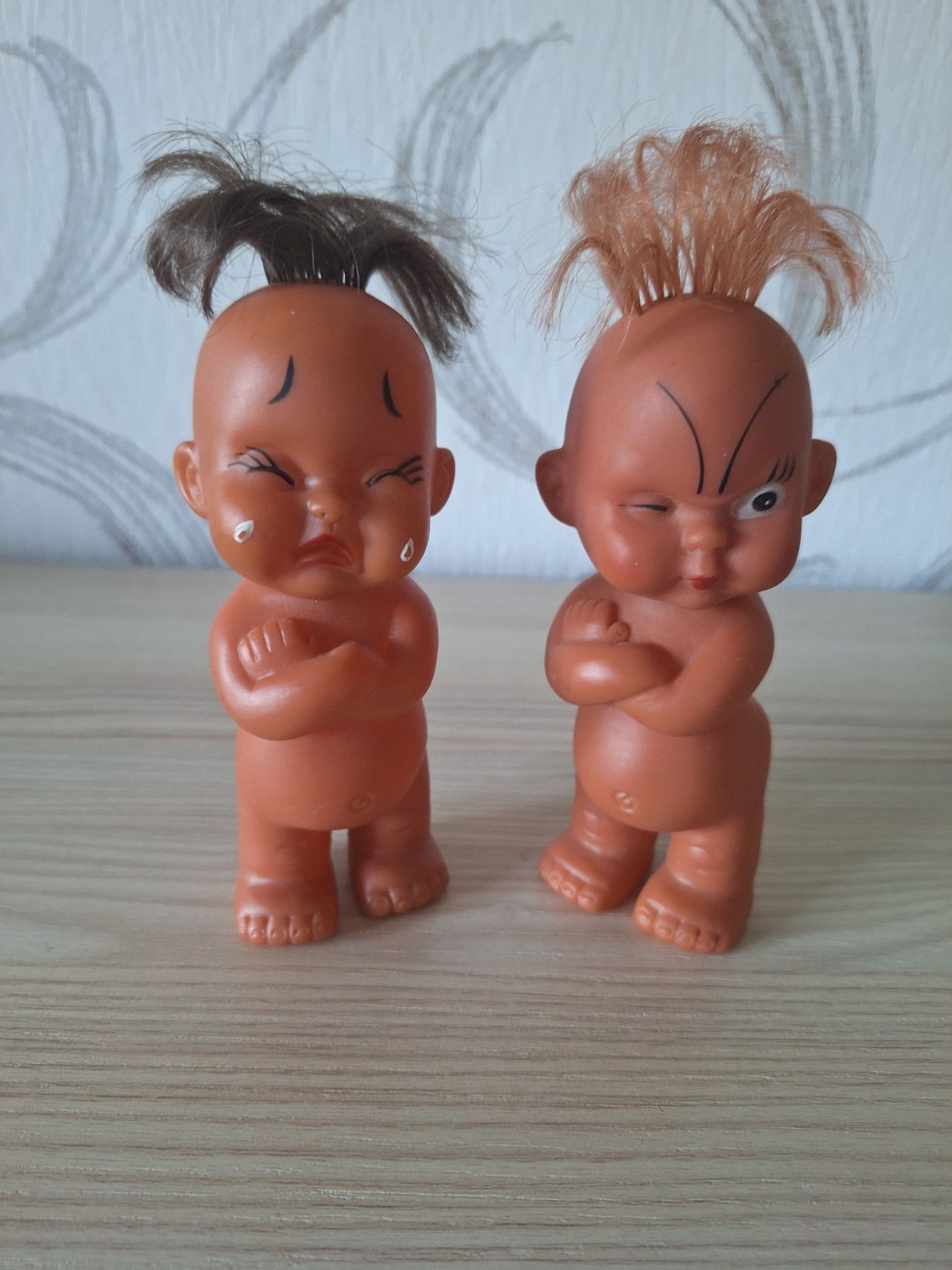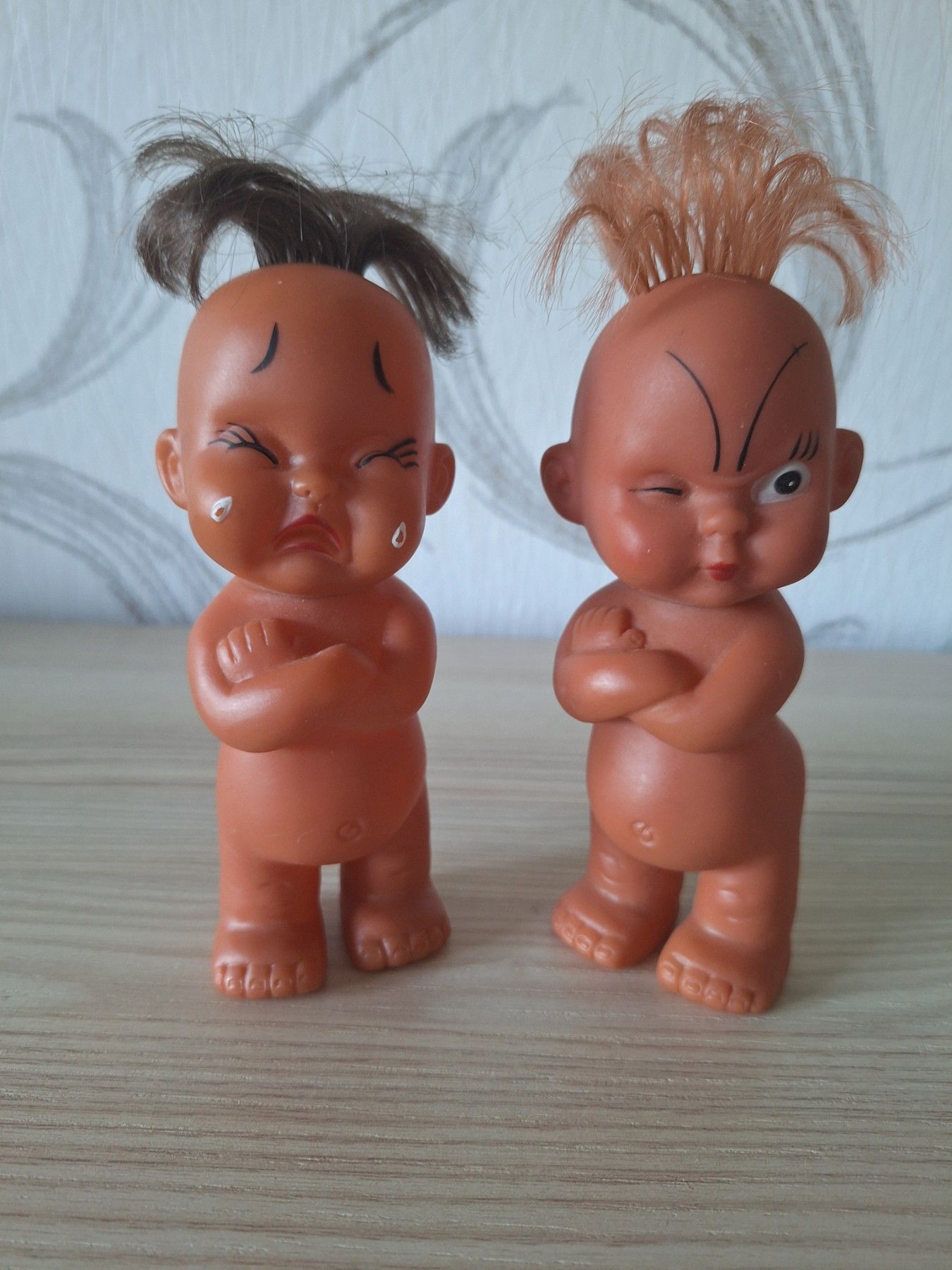 2 Puppen 60er Jahre Spielzeug vintage alt rar 13,5cm nackt weinend und zwinkernd