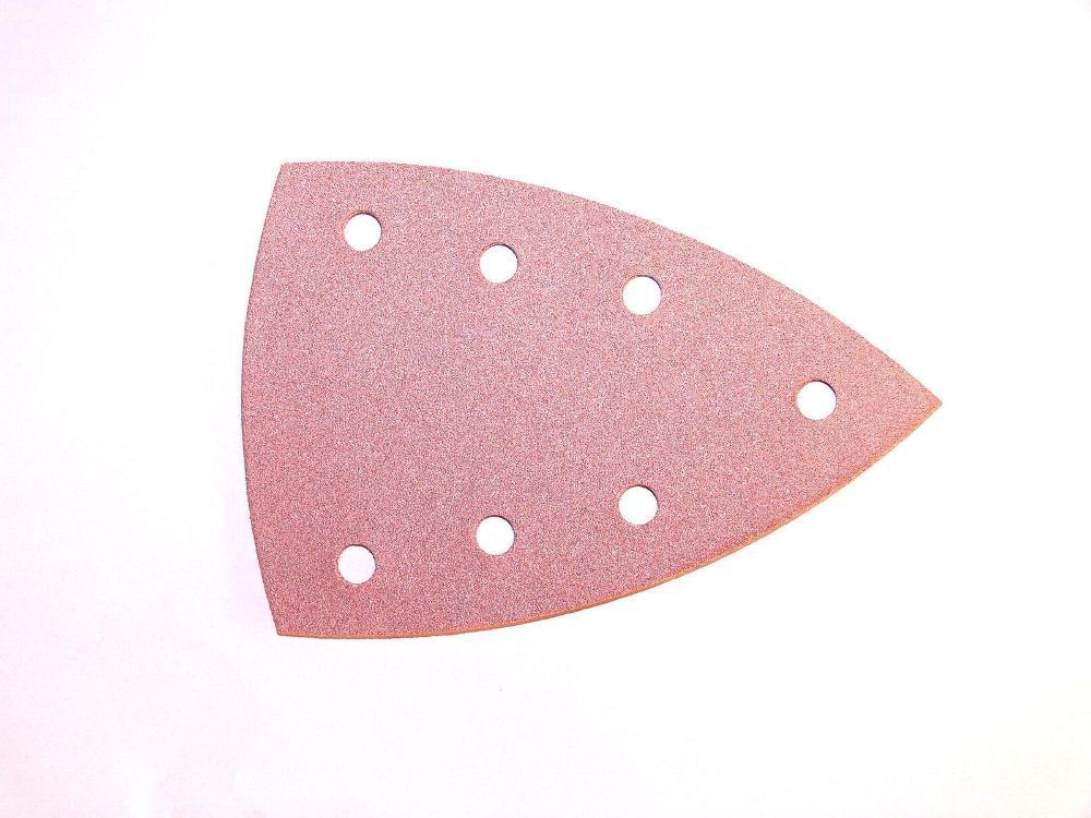 zum Verkauf stehen 2 Schleifblätter 99 x 147 für Dreieckschleifer - Lieferumfang: 2 Stück - Körnung oben wählbar - Größe: 99 x 147 - mit 2 x 3 Seitenlöchern und 1 Stirnloch - Schleifmittel Korund - Trägermaterial: D C-Papier - Bindung: Kunstharz - deutscher Hersteller - zu verwenden für folgende Mat