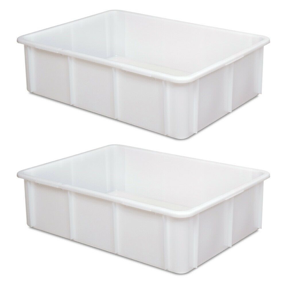 2 Schwerlastbehälter, LxBxH 800 x 600 x 220 mm, 80 Liter, weiß, lebensmittelecht