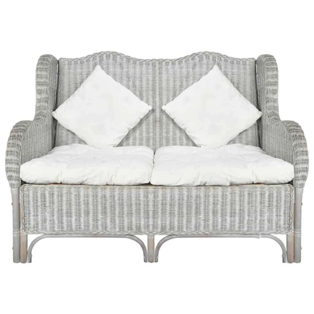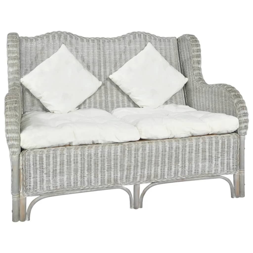 VIDAXL 2-Sitzer-Sofa Grau Natürliches Rattan und Leinen