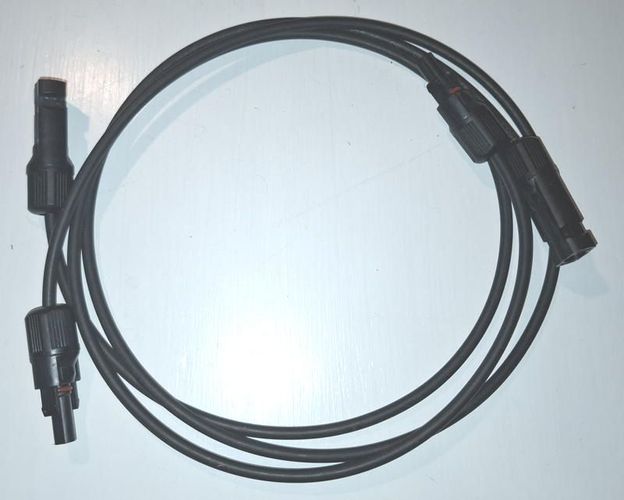 Biete hier 2 Stück neue und unbenutzte Solar-Verlängerungskabel mit einer Länge von ca. 100cm, Durchmesser 4mm und MC4-Steckern und Buchsen. Prima als Verlängerung und zum Verbinden von 2 Solarmodulen. Beim Gewinn mehrerer Auktionen wird natürlich nur einmal Porto berechnet und Sie bekommen deswegen