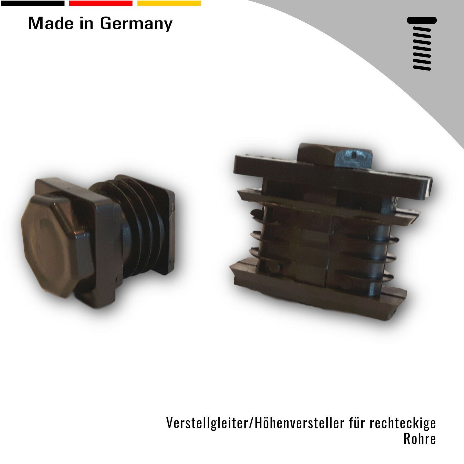 2 Stellfuß/ Höhenversteller, Quadratrohre, Rechteckrohre, Kunststoff, schwarz