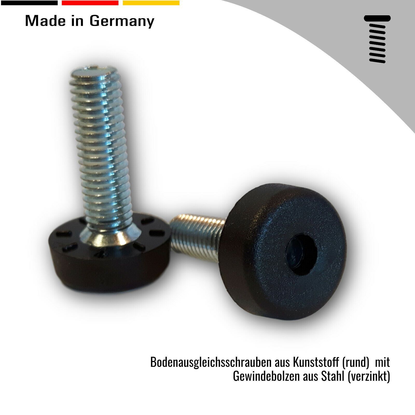 2 Stellteller/ Bodenausgleichsschrauben/ Höhenversteller M6, M8, M10 schwarz rund
