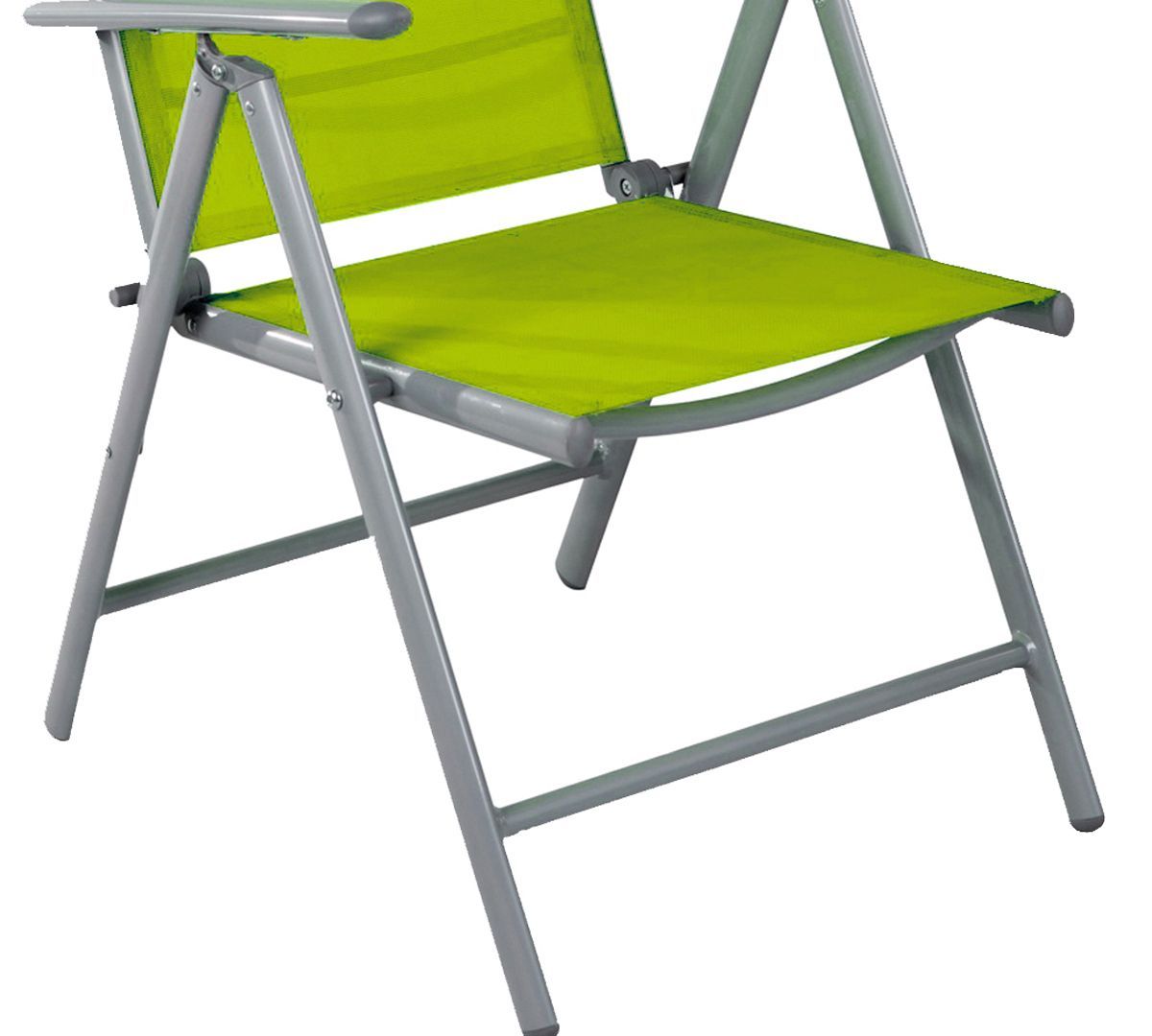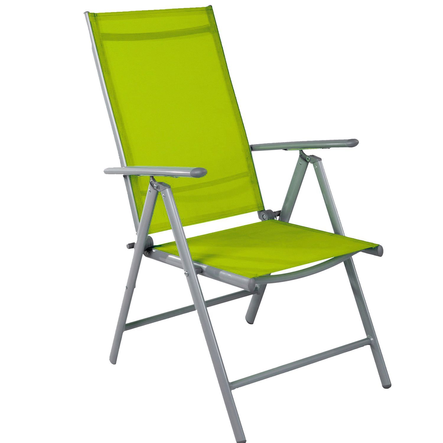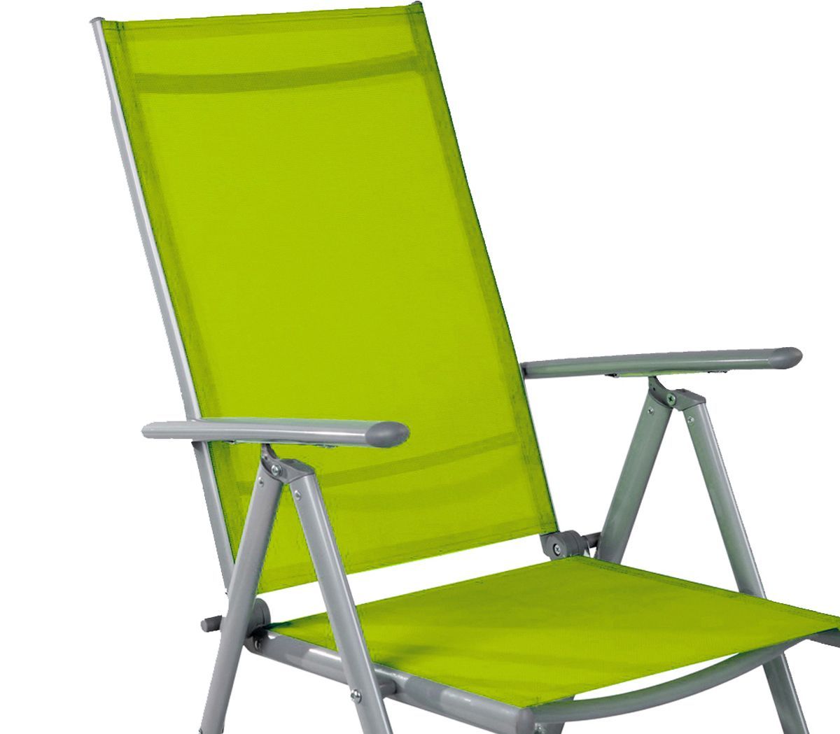 2 Stk Garten Klappstuhl Hochlehner Alu - Textilen 7- Positionen Silbergrau/Lime