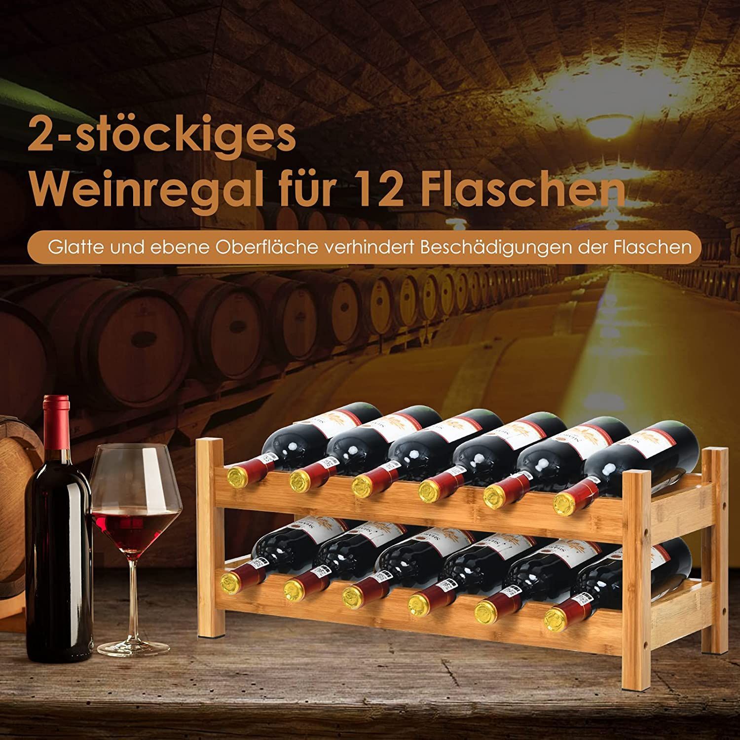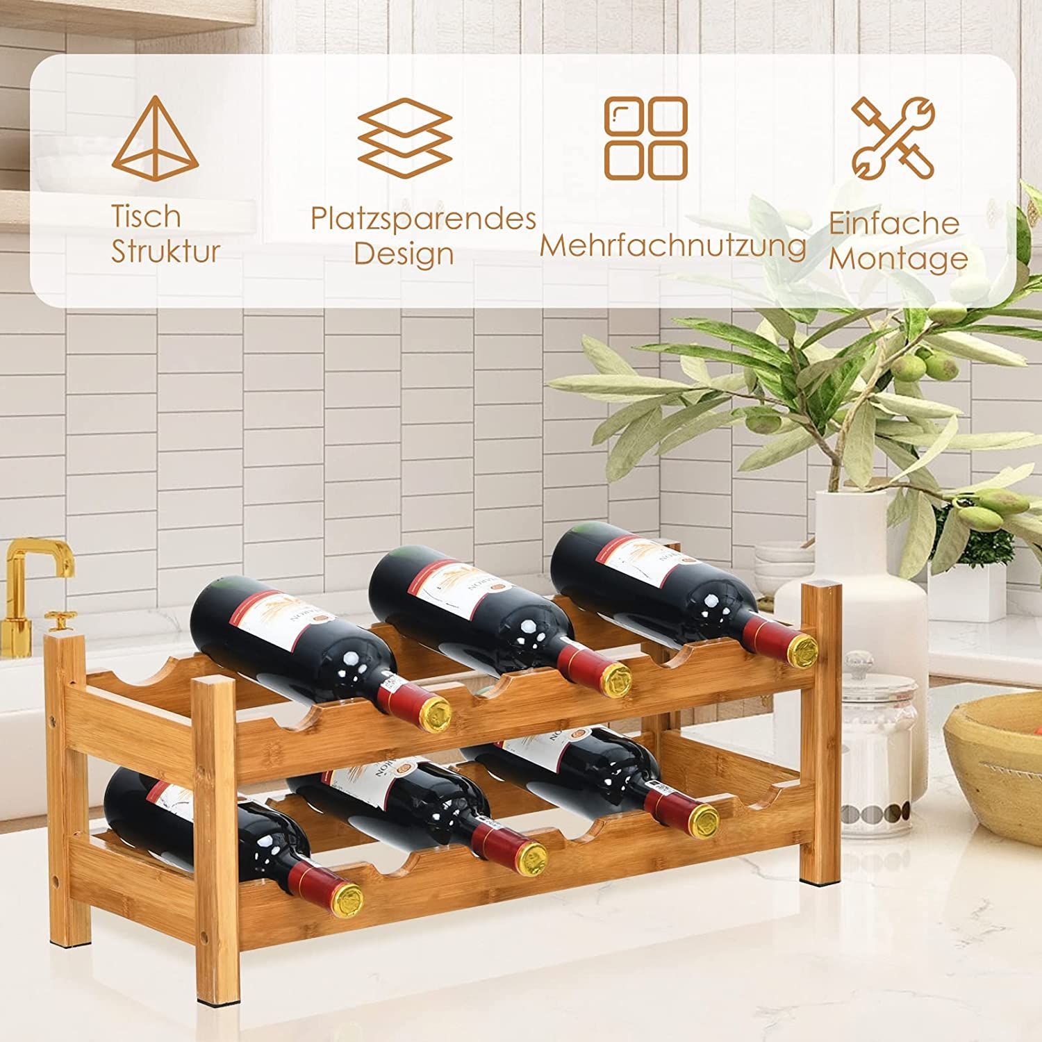 2- stöckiges Weinregal Bambus, Flaschenständer Weinständer