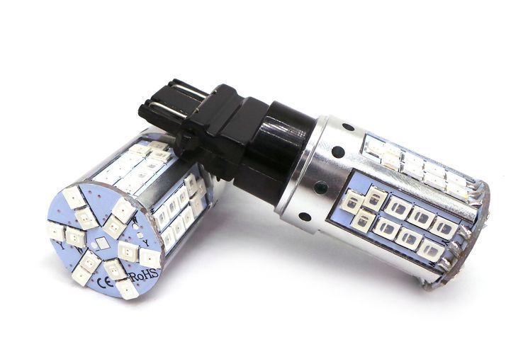 2 Stück 3157, P27/7W LED-Glühbirne 12-24V CANBUS orange-rot, bicolor USA Off-Road