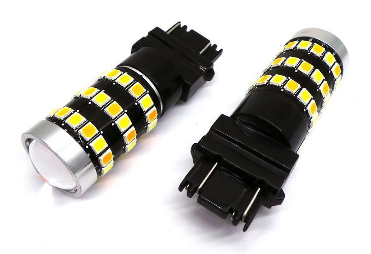 2 Stück 3157, P27/7W LED-Glühbirne 12V CANBUS weiß-orange, bicolor Off-Road