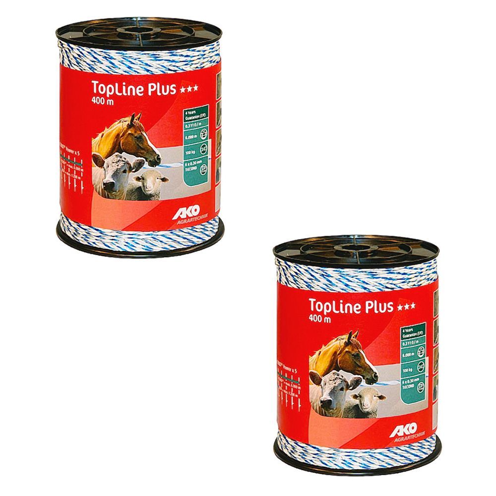 2 Stück 400 m TopLine Plus Weidezaunlitze Elektrozaun weiss-blau TriCond