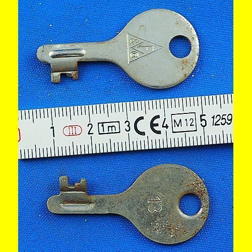2 Stück alte Flachschlüssel für Spardose / Sparschwein ca. 43 mm Schliessung 13