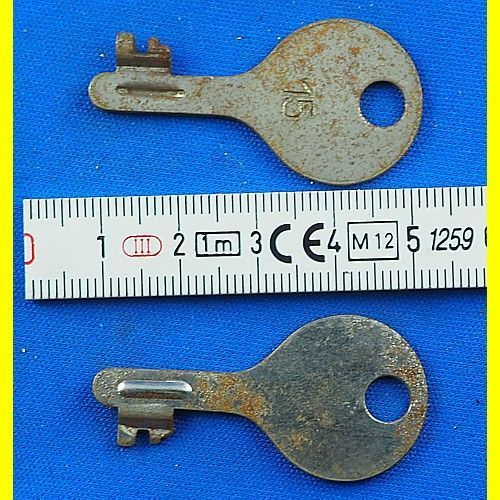 2 Stück alte Flachschlüssel für Spardose / Sparschwein ca. 43 mm Schliessung 15