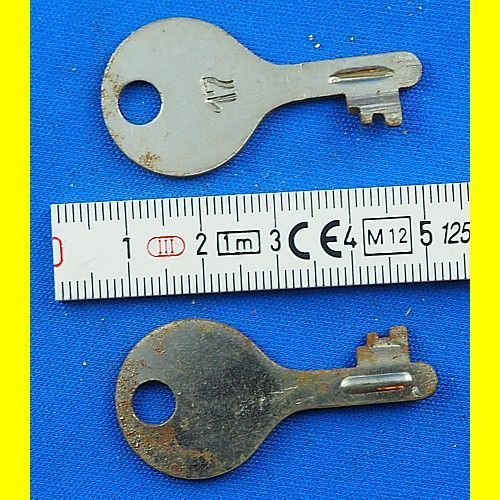 2 Stück alte Flachschlüssel für Spardose / Sparschwein ca. 43 mm Schliessung 17