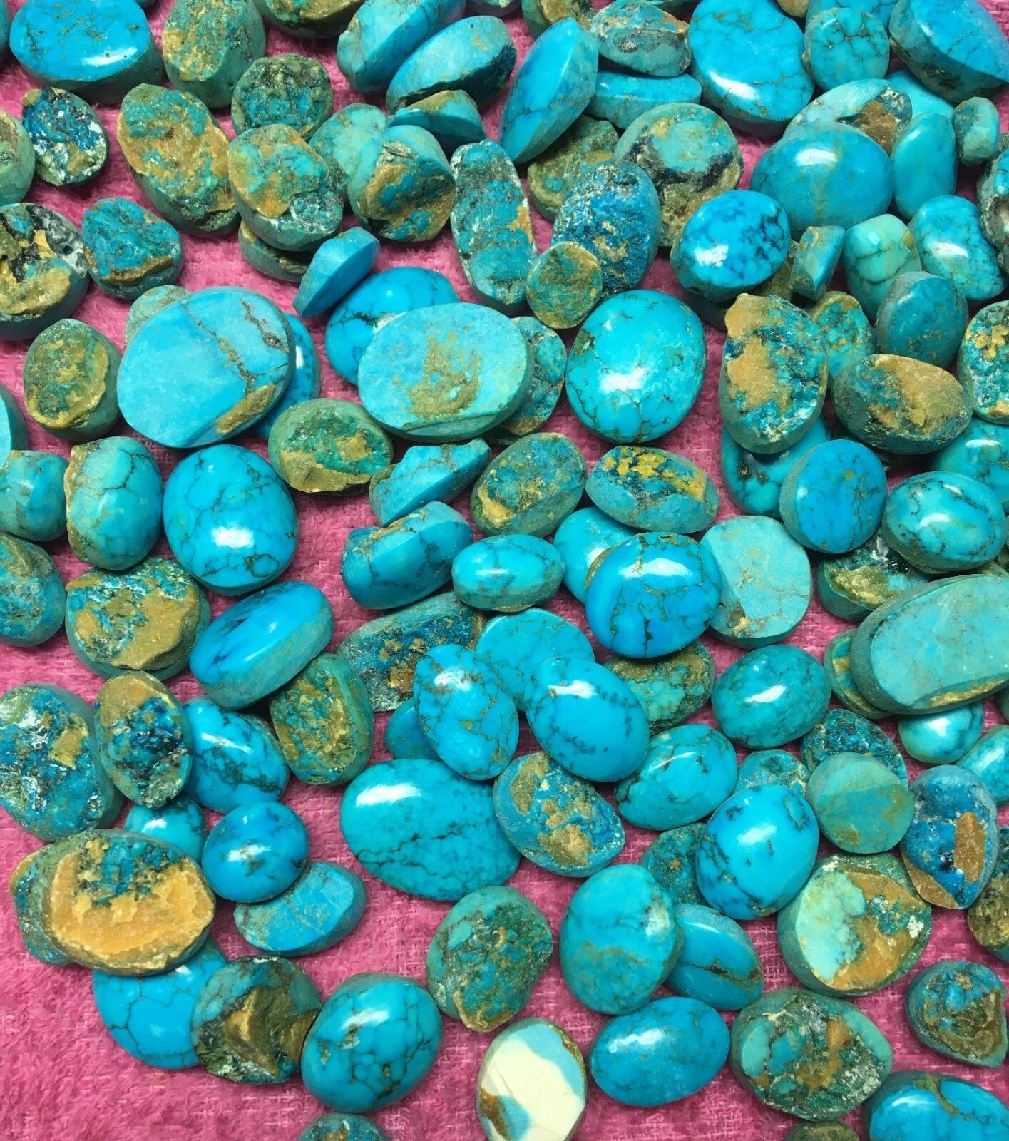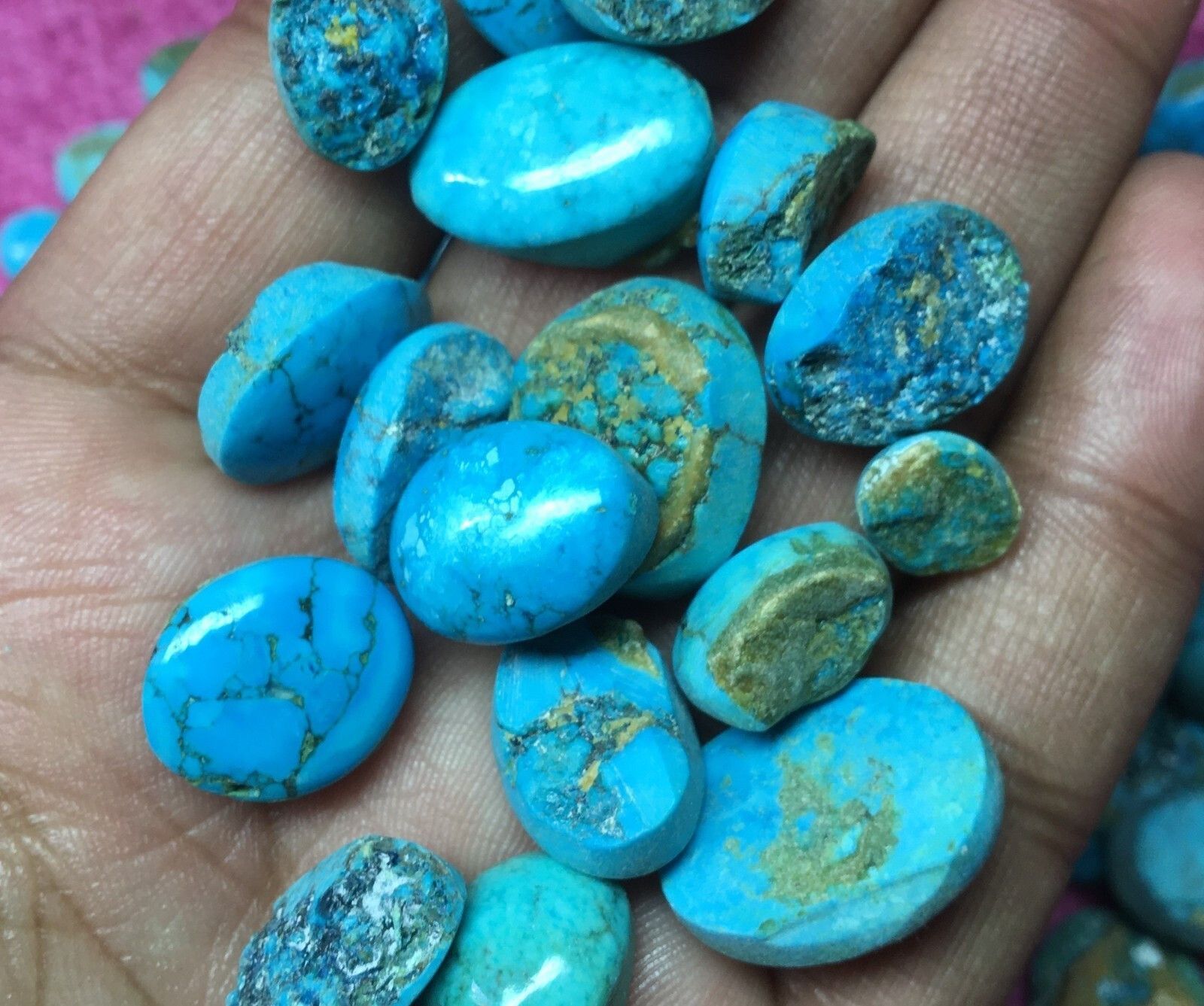 2 Stück natürliche gemischte ovale Arizona Türkise Cabochone Größen 12 bis 18 mm (ca. 25 Carat) Zur Information: 1 Gramm entspricht 5 Carat Gemischte ovale Formen Herkunft: Arizona Opak Farbe: siehe Bilder Das Bild dient nur als Beispiel!!!!! Die Auswahl wird von mir gemacht, aber es sind alles wund... Mehr