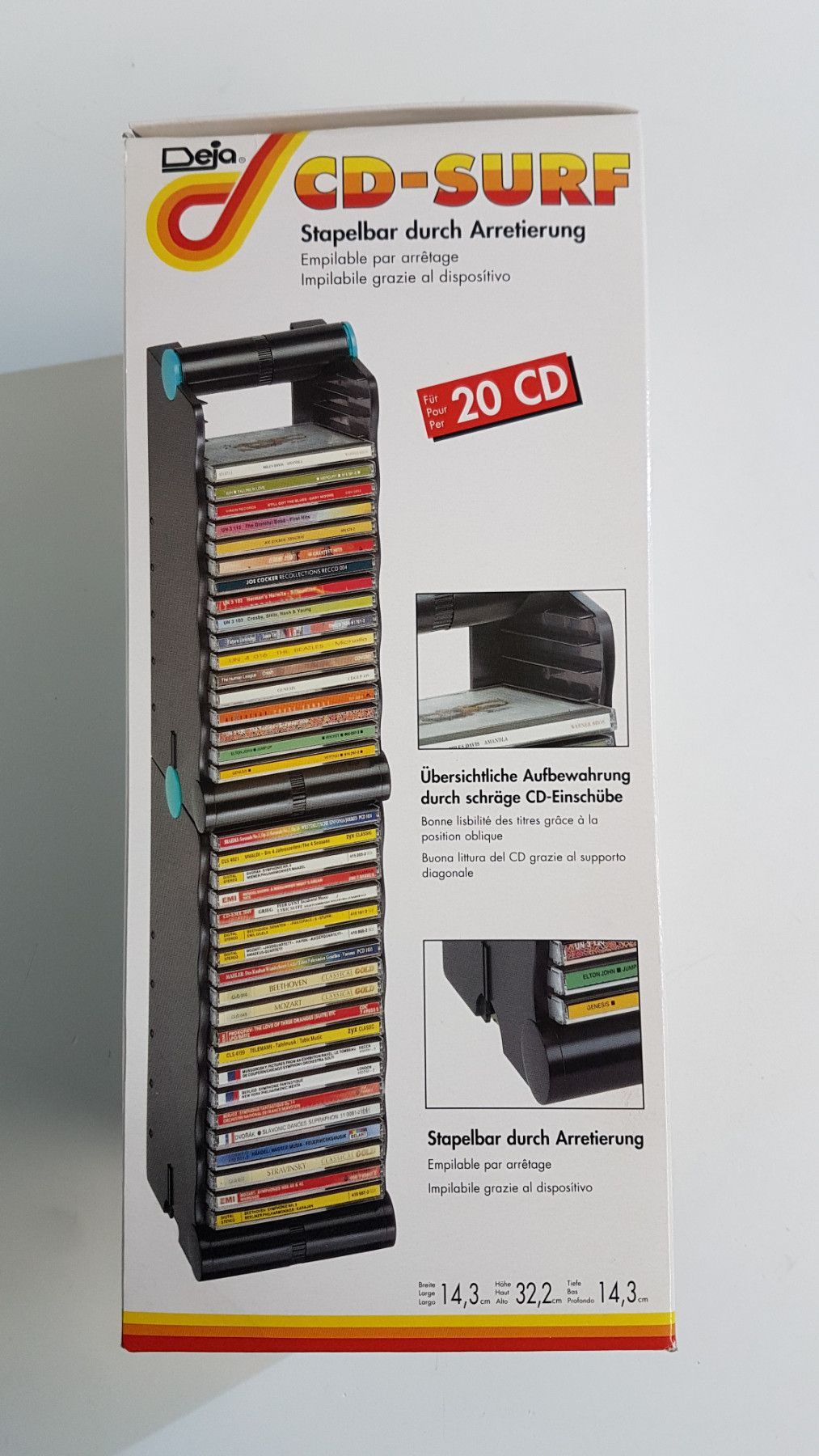 2 Stück CD Turm Ständer Tower Regal schwarz für 20 CDs Plastik stapelbar tragbar mit Griff gebraucht, sehr guter Zustand tragbar durch Tragegriff stapelbar durch Klicksystem Höhe: 32,2 cm Breite und Tiefe: 14,3 cm siehe Fotos Lieferung ohne Originalverpackung