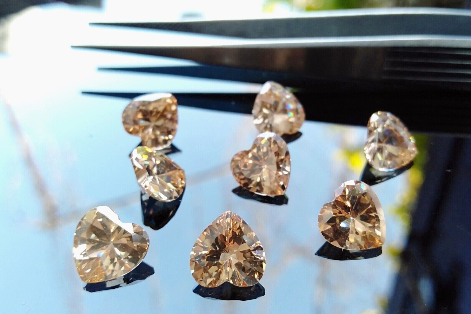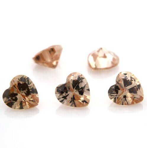 2 Stück Champagner Cubic Zirkonia Steine im Herz Design 6 mm (CZ230531)