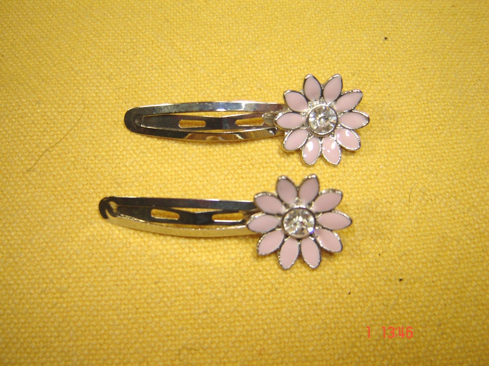 2 Stück Haarclip silberfb mit Blume rose emaill Glitzerstein 5,5 cm p