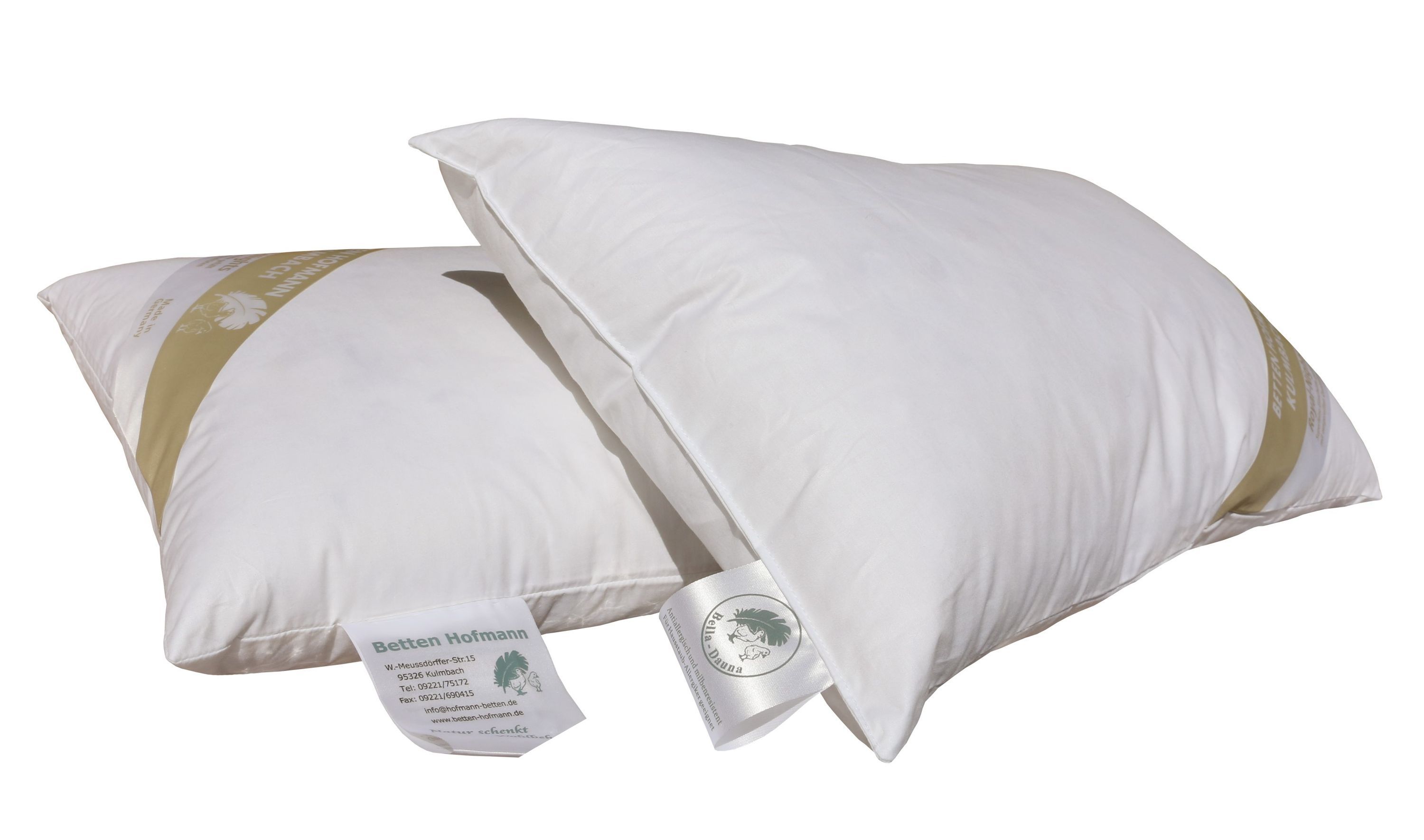 2 Stück Hofmanns Kopfkissen 30x50 Nackenkissen Federkissen 30% Daunen 300 g prall