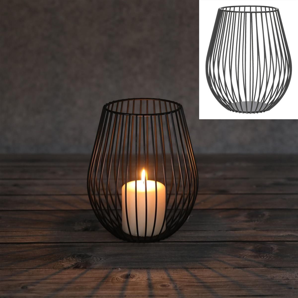 2 Stück Kerzenhalter schwarze Streben 18cm Laterne Windlicht Deko Industrial Style