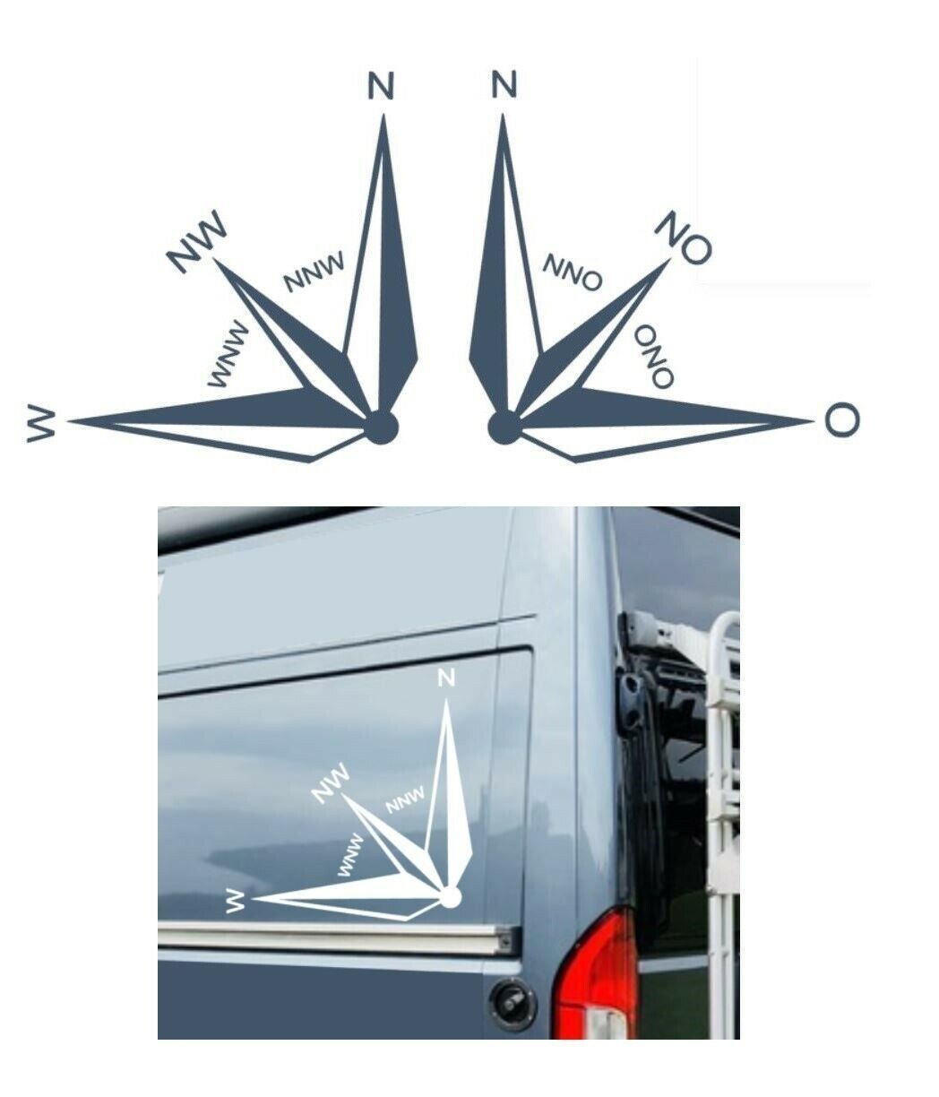 2 Stück Kompass Aufkleber Windrose Auto Caravan Wohnmobil (303/4