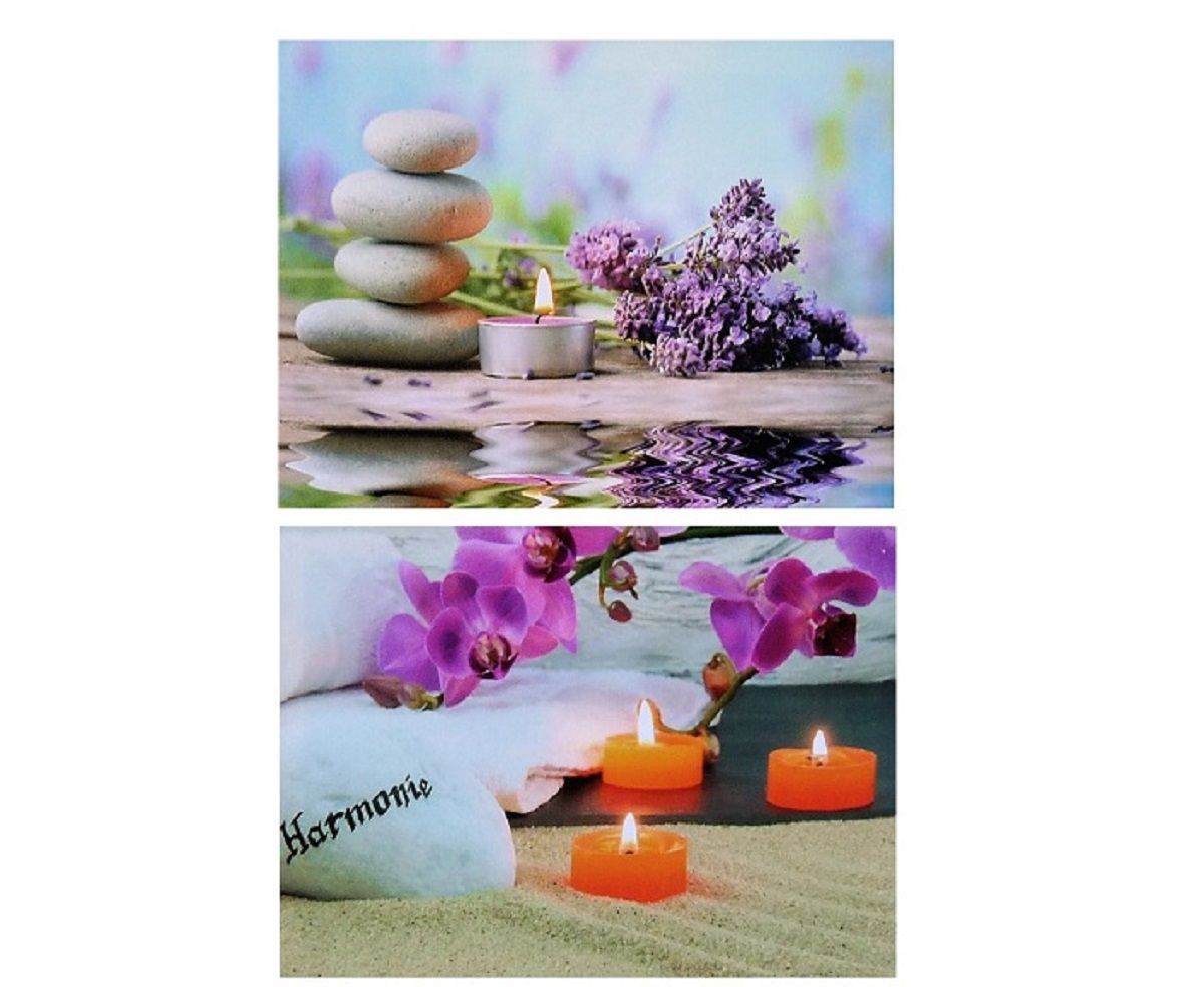 2 Stück LED Wandbilder Orchidee Flieder Bilder beleuchtet je 40 x 30 cm