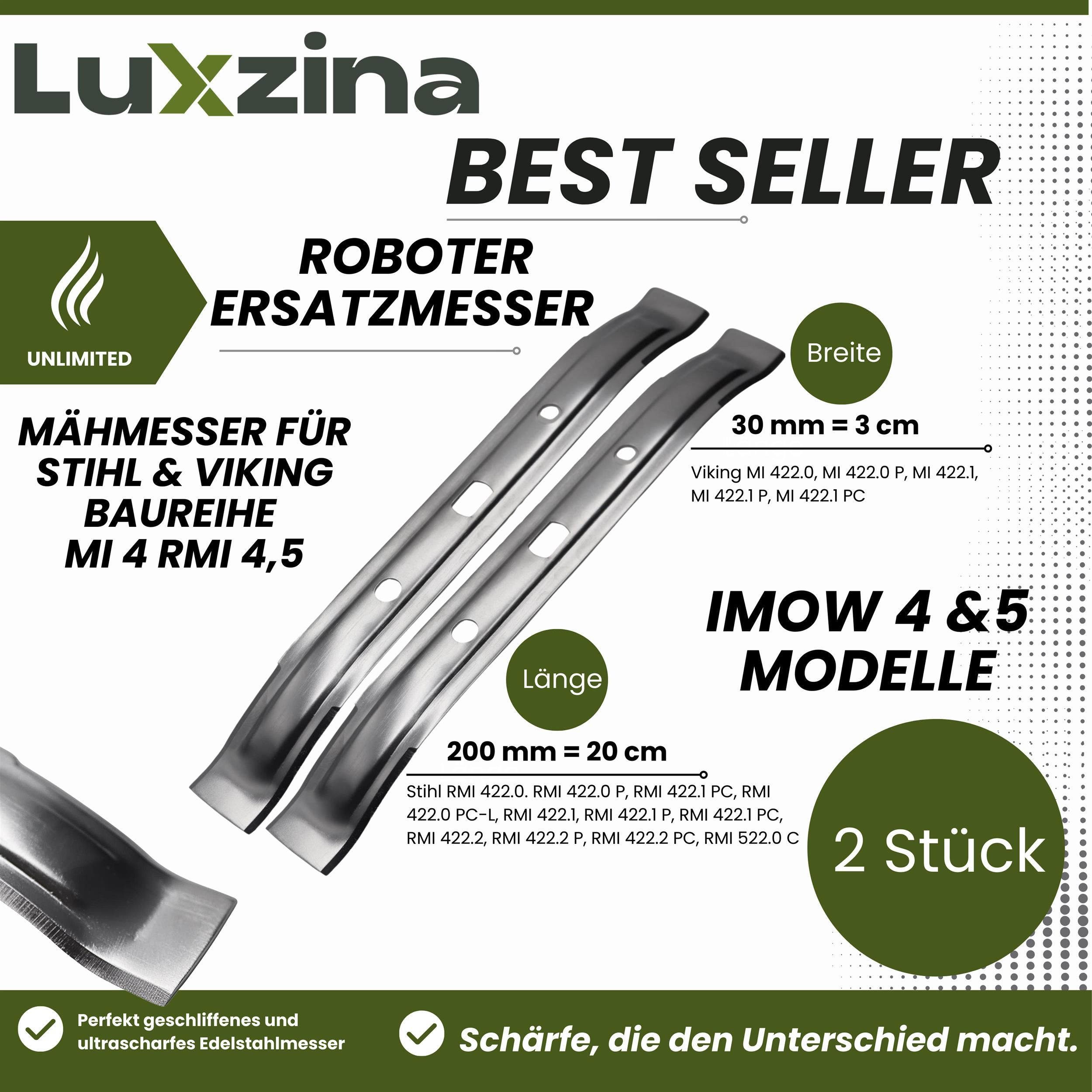 2 Stück Mähmesser Kompatibel für Stihl und Viking iMow RMI 422 RMI 522, 20 cm