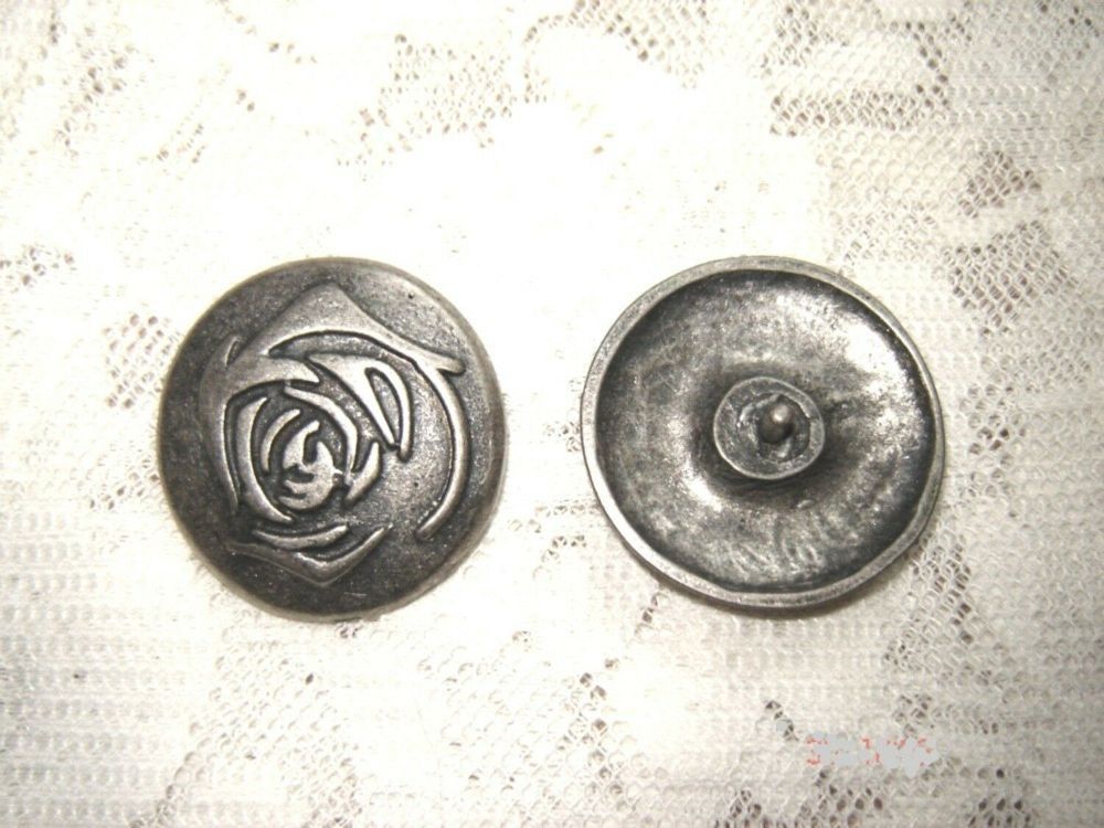 Trachtenschmuck, Ledertasche , Ledergürtel 2 Stück sehr schöne Niete für Gürtel , Ledergürtel , Tasche und ähnliches ausgezeichnet verarbeitet , aus deutscher Herstellung sehr massiv gearbeitet , altsilberfarben wunderschöne runde Niete verziert mit einer stilisierten Rose Durchmesser 3,4 cm mit 1 N