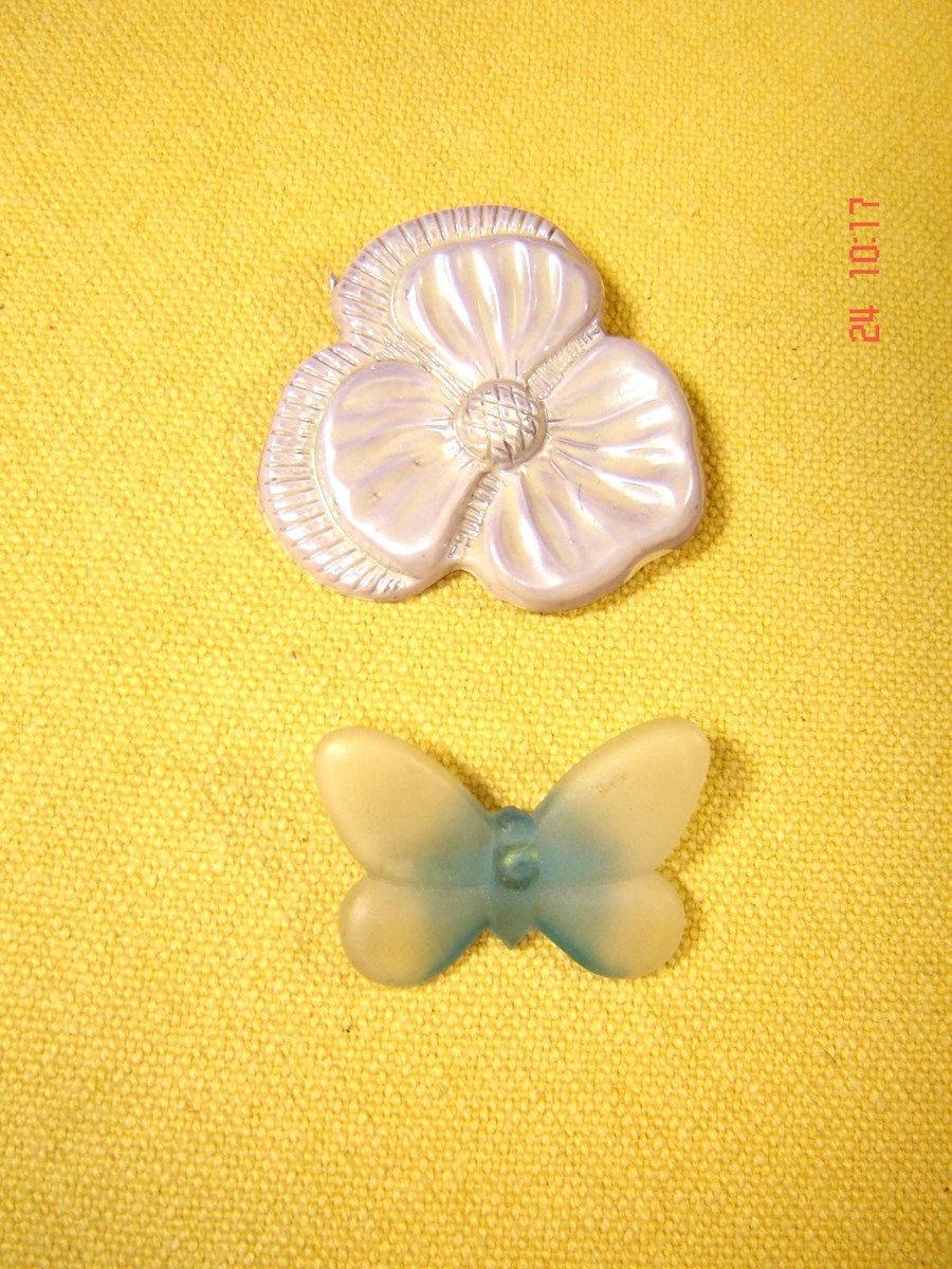 2 Stück Vintage Brosche Schmetterling Blume Kunststoff Z p