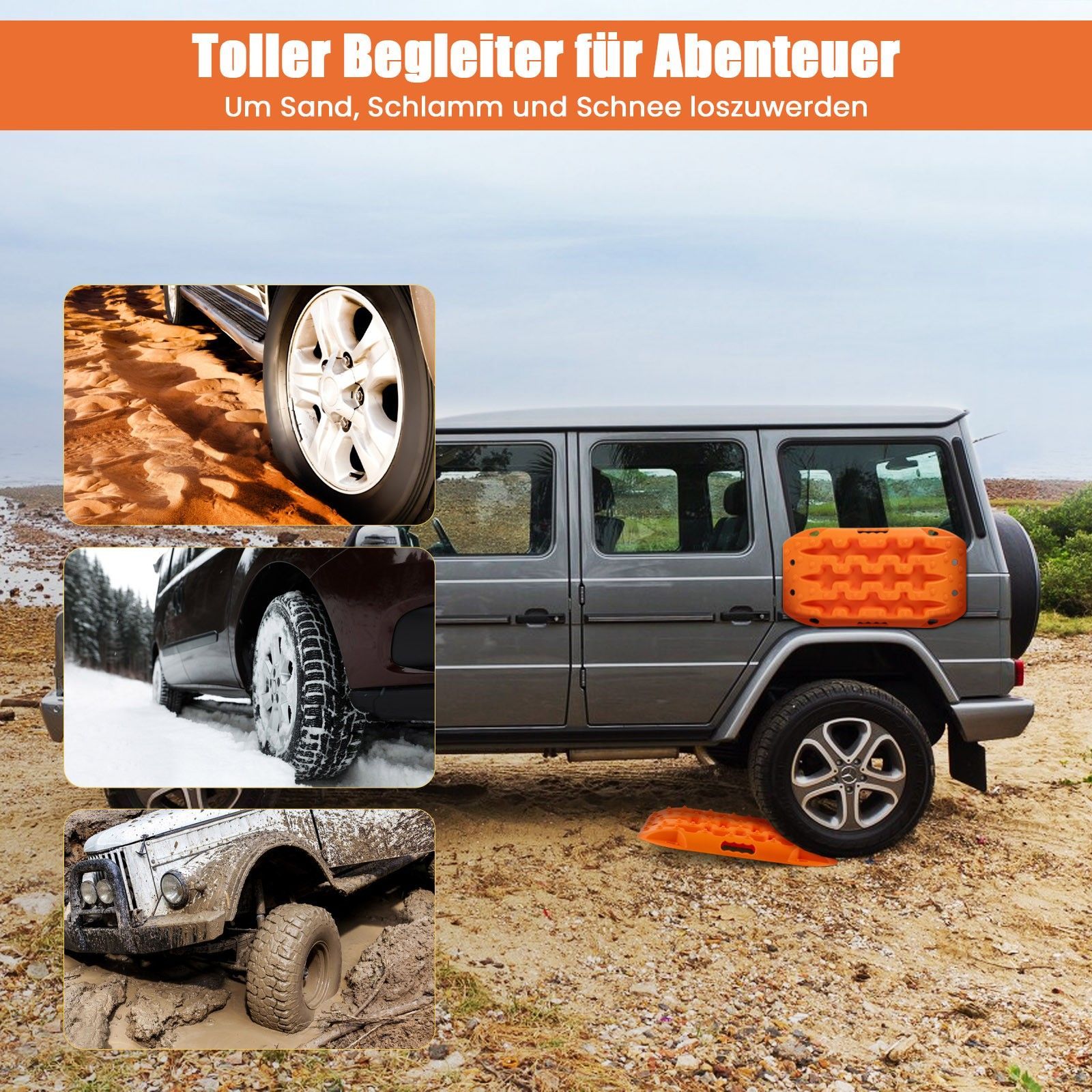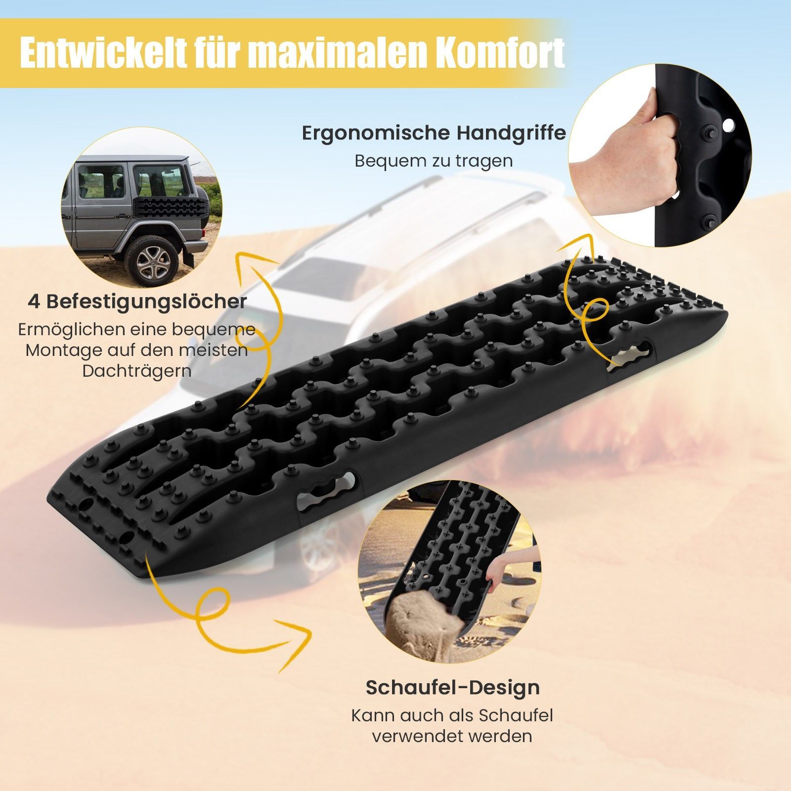 2 Stücke Anfahrhilfe Sandbleche Offroad, Reifenleiter für Sand/ Schlamm/ Schnee, 10T