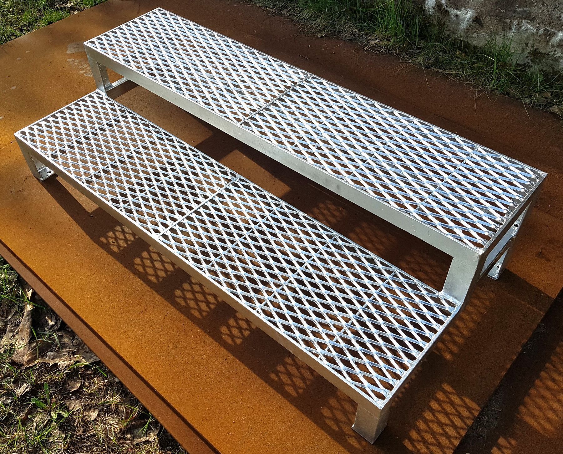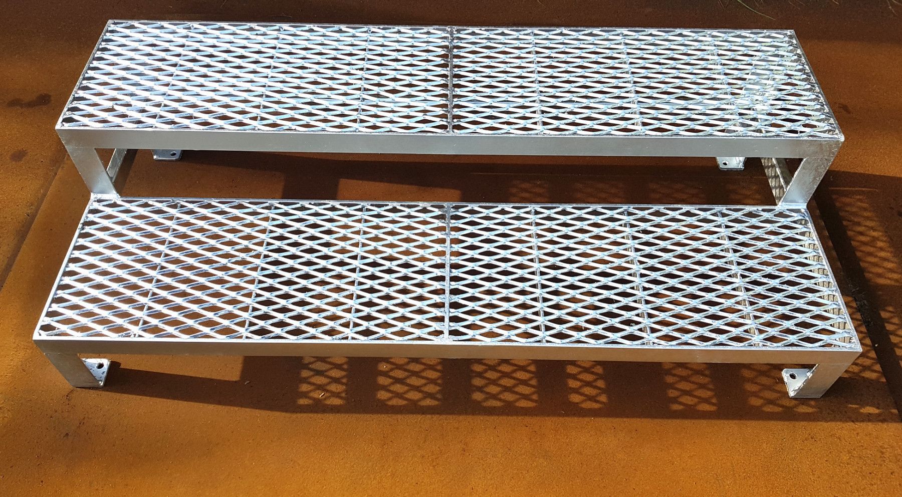 2 Stufen Stahltreppe Außentreppe Freistehend Breite 100 cm Höhe 30-43 cm verzinkt