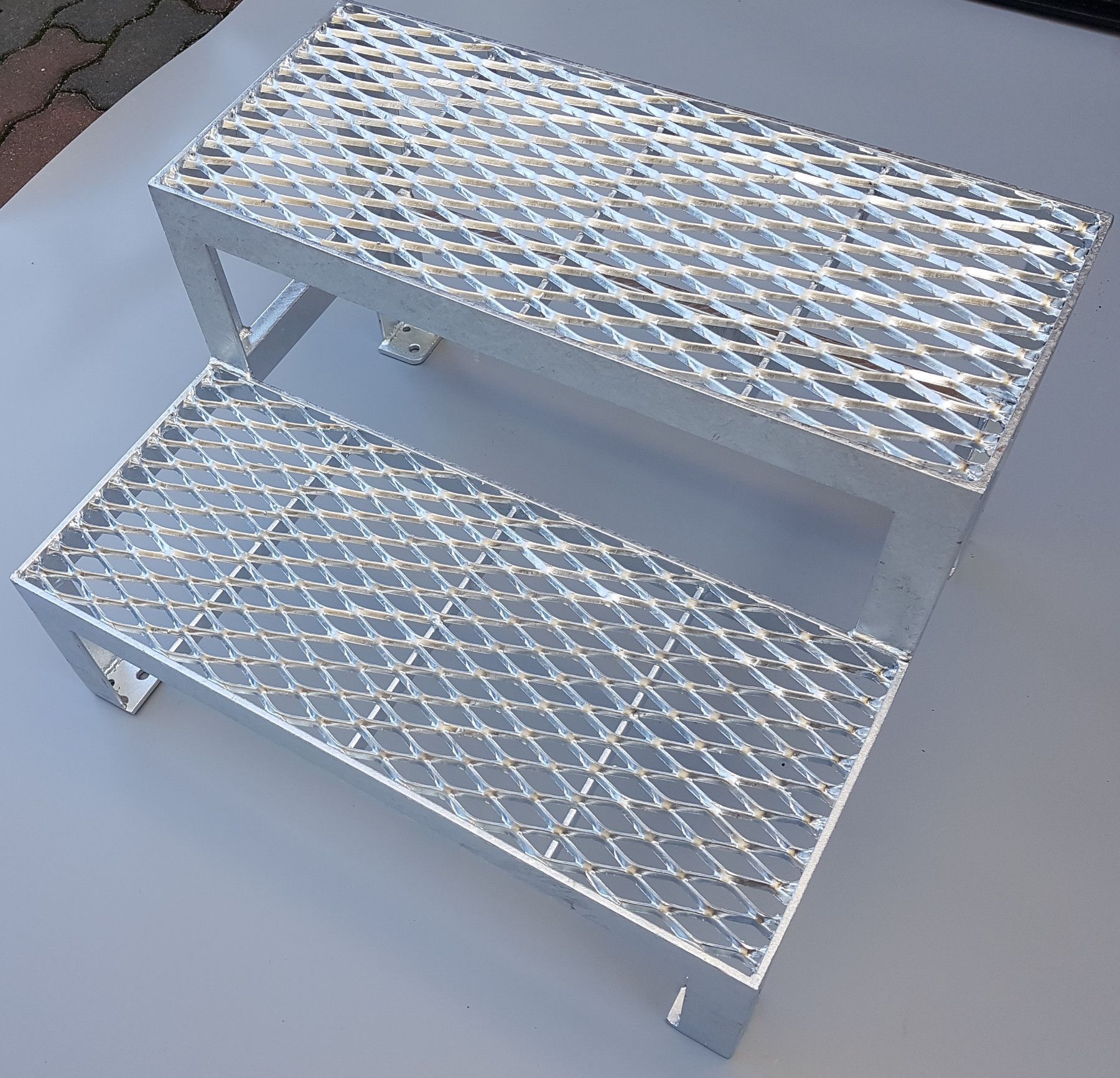 2 Stufen Stahltreppe Außentreppe Freistehend Breite 40 cm Höhe 30-43 cm verzinkt