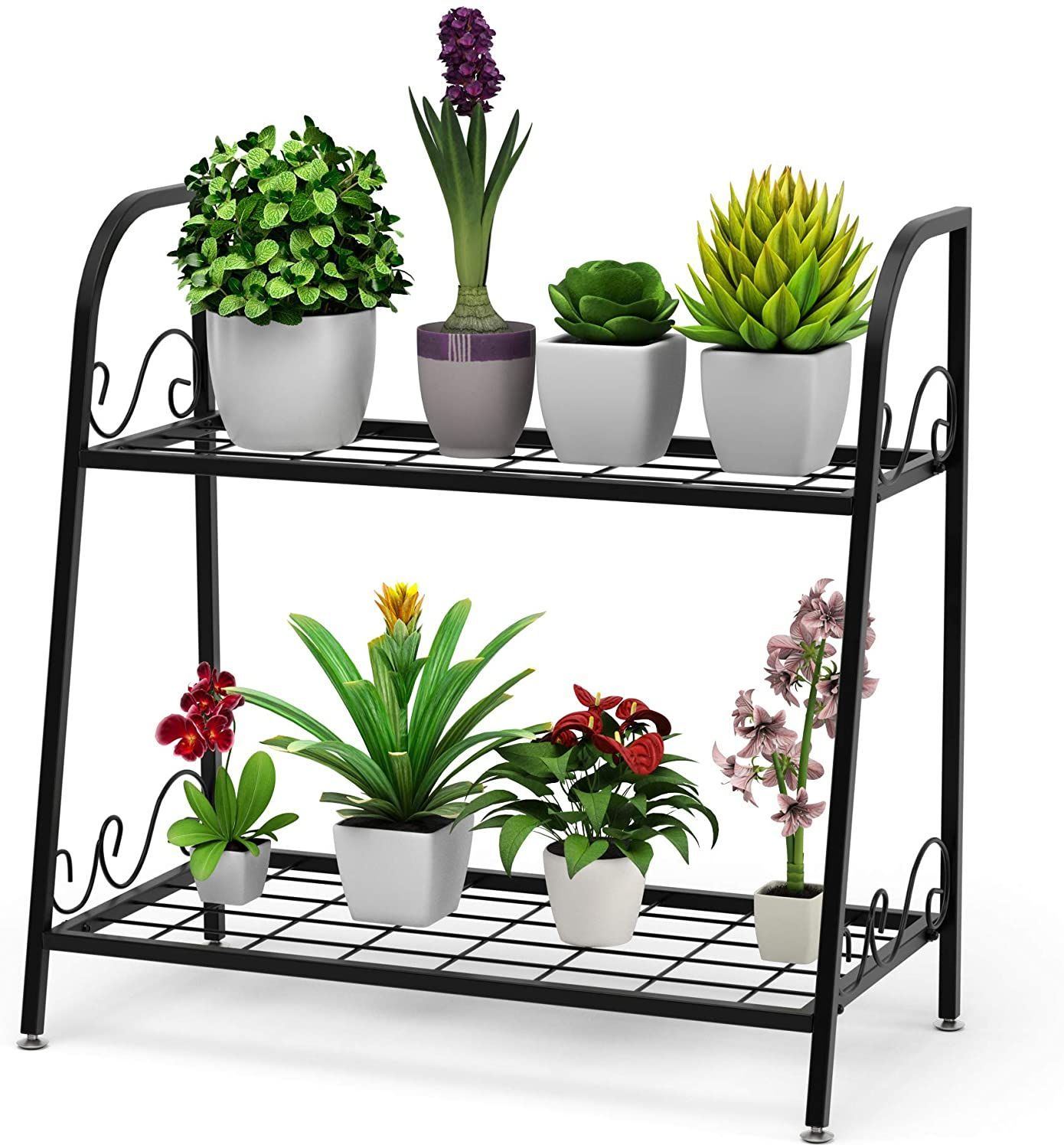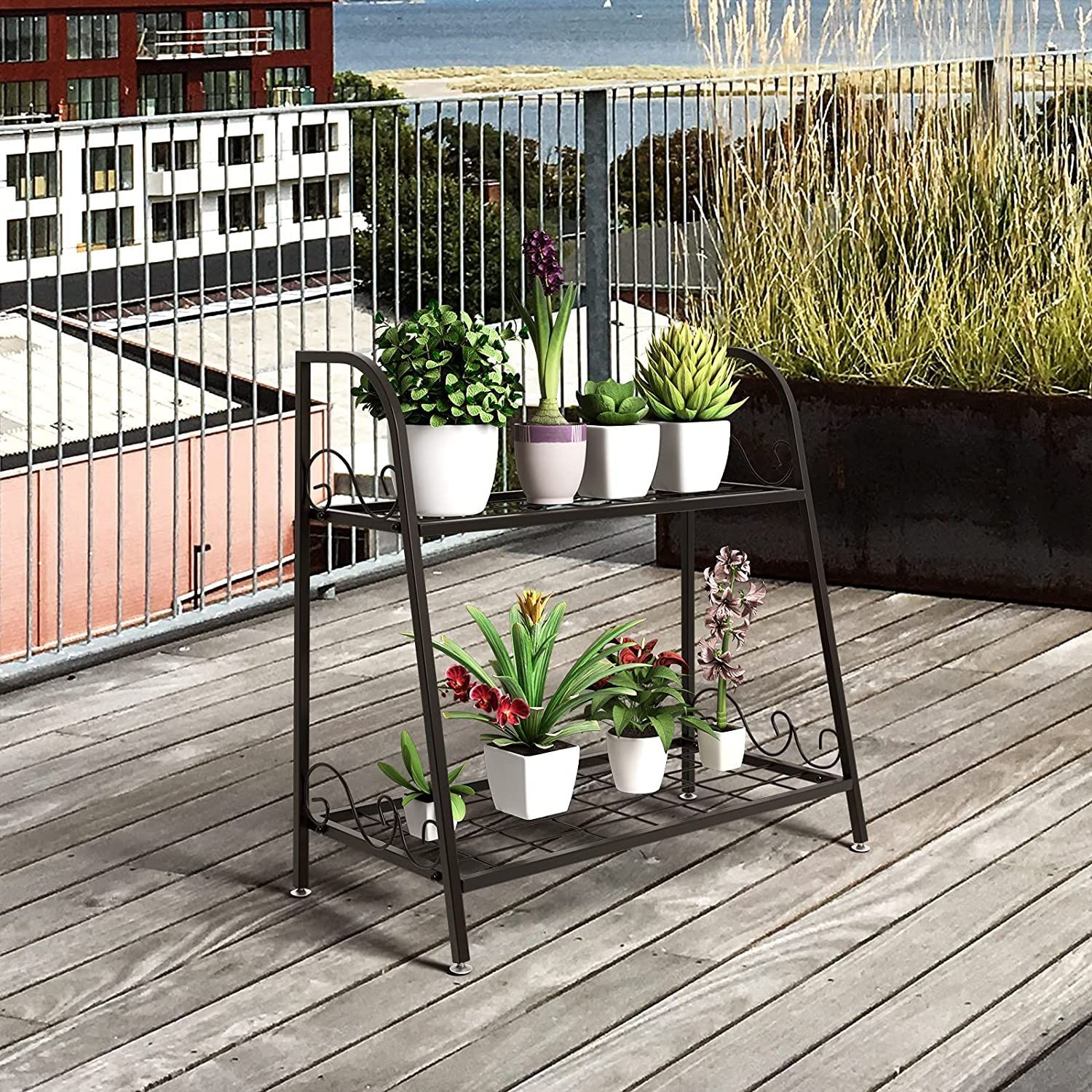 2-stufiger Metall Pflanzenständer, Multifunktionales Pflanzenregal Ausstellungsregal