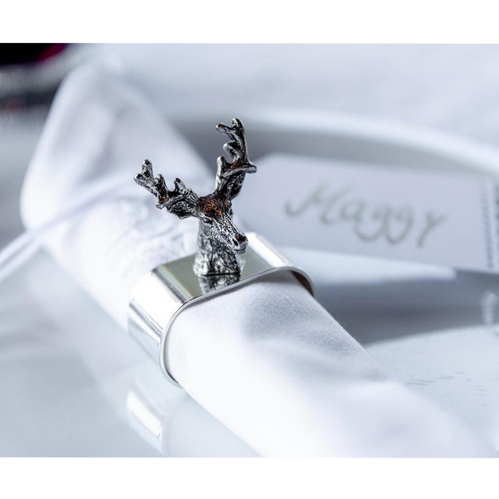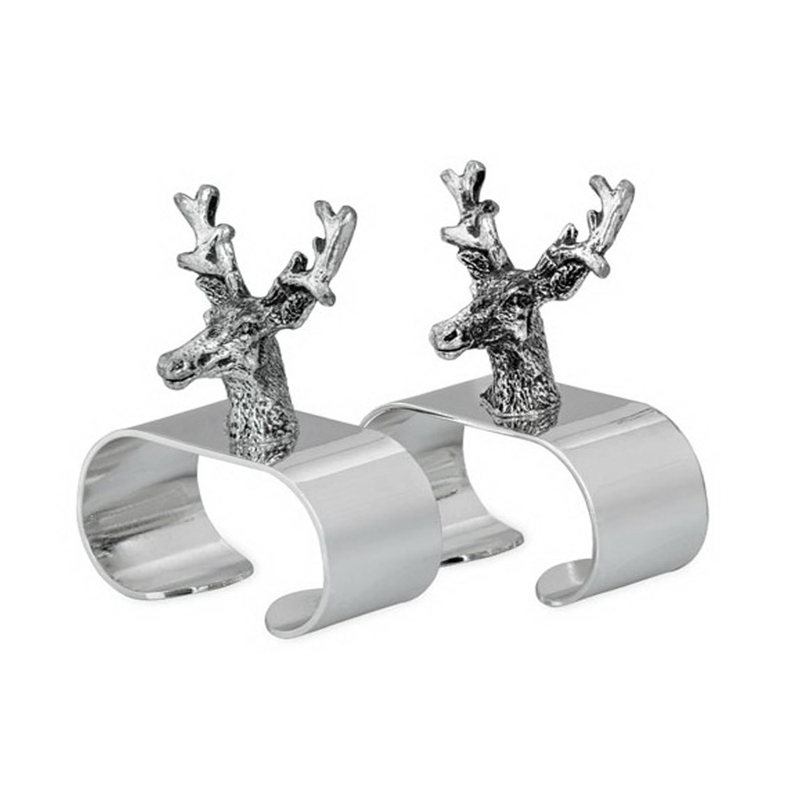 2 teilige runde versilberte Serviettenringe mit Hirschkopf 5 cm