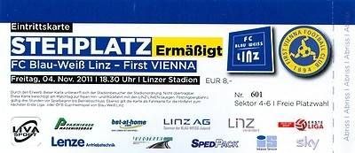 2) Ticket FC Blau-Weiß Linz - First Viennna FC 4.11.11 SK VÖEST VOEST BW Stahl