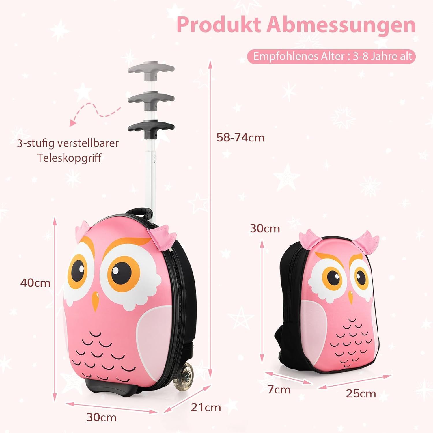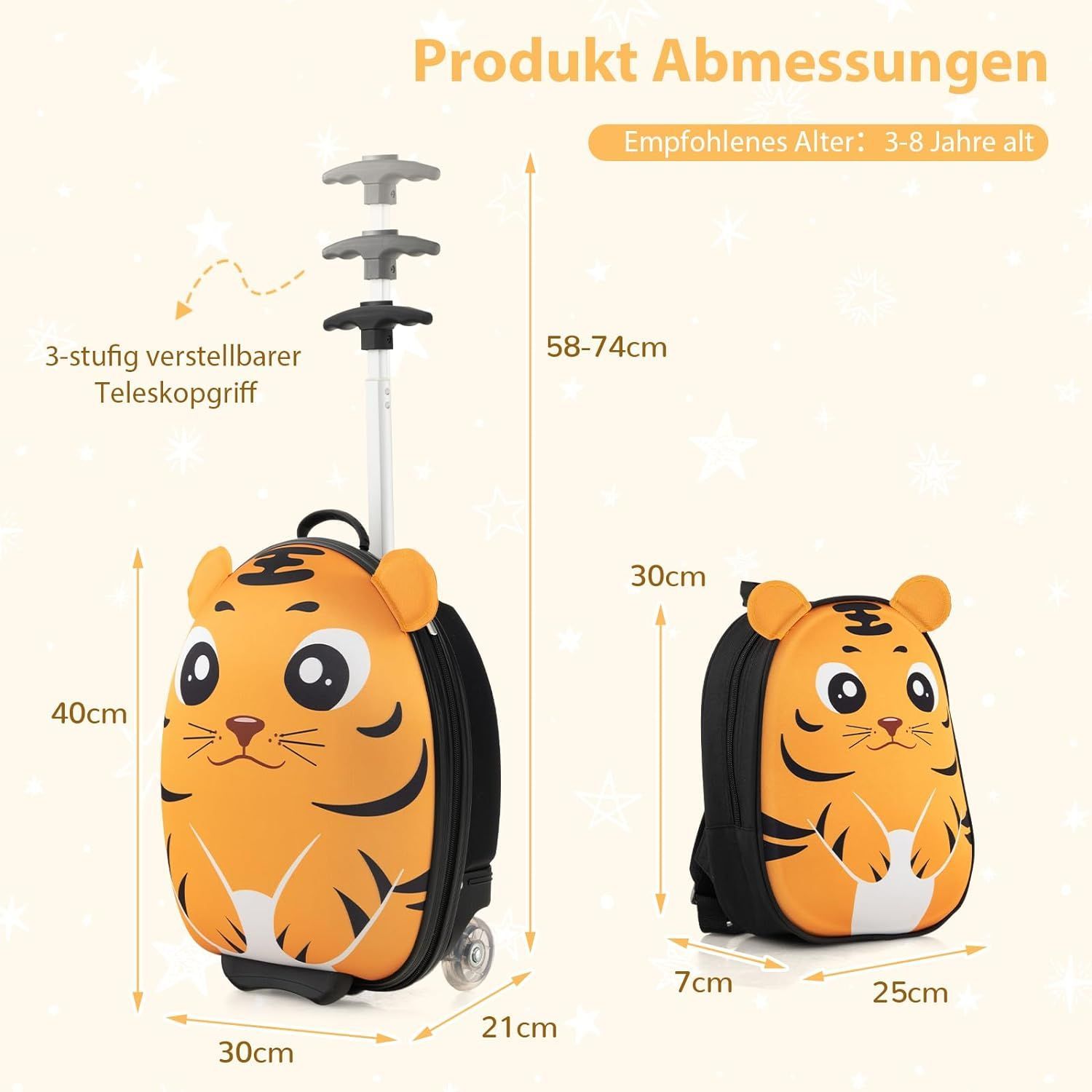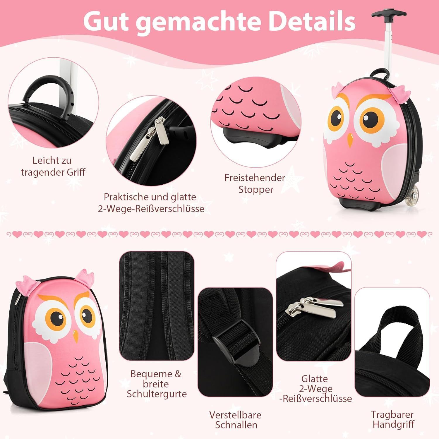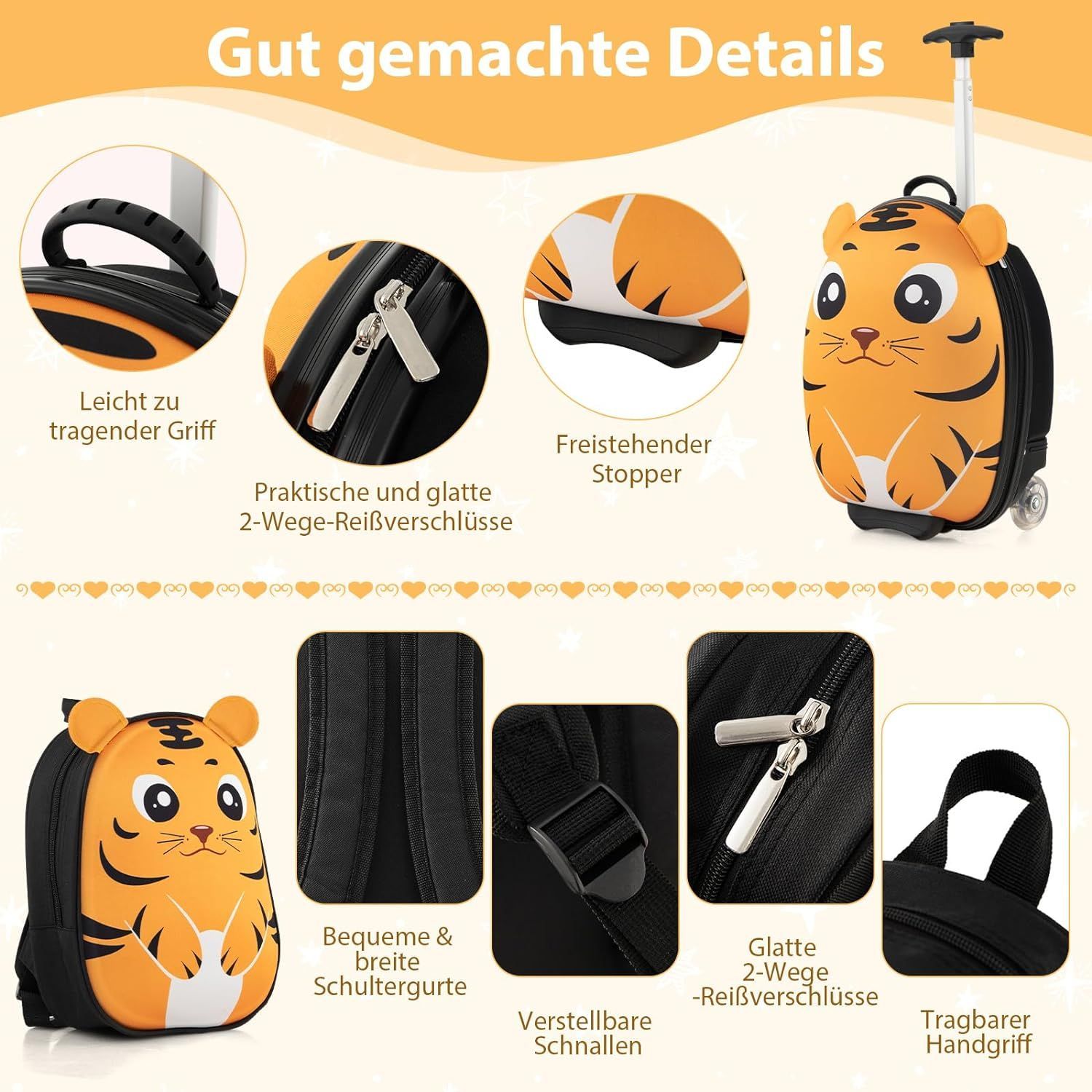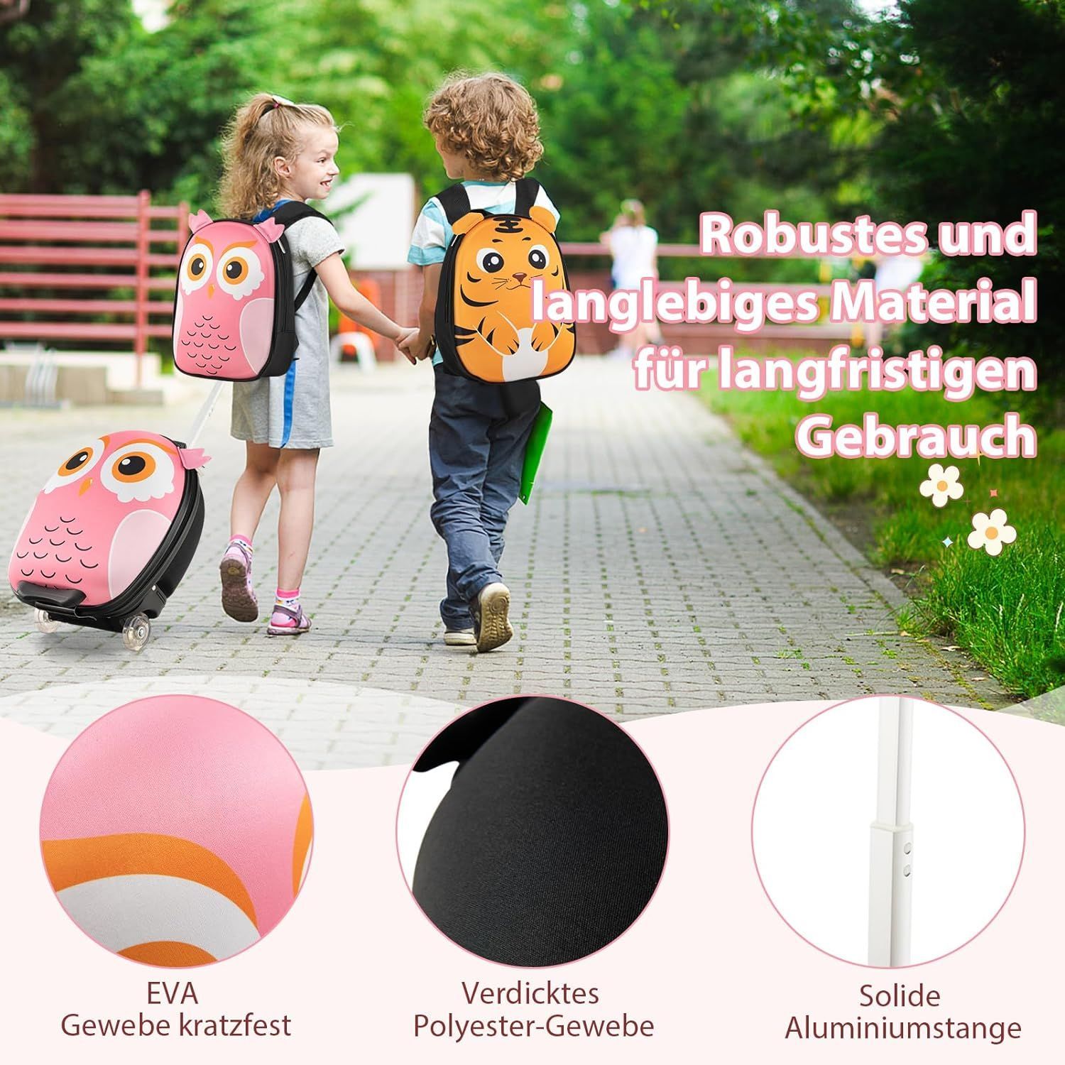 2 TLG Kinderkoffer mit Rucksack, 12" + 16" Kindertrolley Reisegepäck mit Rollen