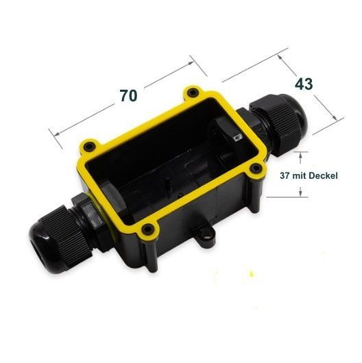 Sie bieten hier auf folgenden Artikel 1 Stück 2-Wege Abzweigdose Verbindungsdose Kabelverbinder Aussen KabelDurchschitt 4mm-12mm Die wasserdichte Abzweigdose (IP68) ist für die Verkabelung von stromführenden Kabeln im Außenbereich oder in Feuchträumen geeignet. Anwendungsbereiche: Verkabelung von Au