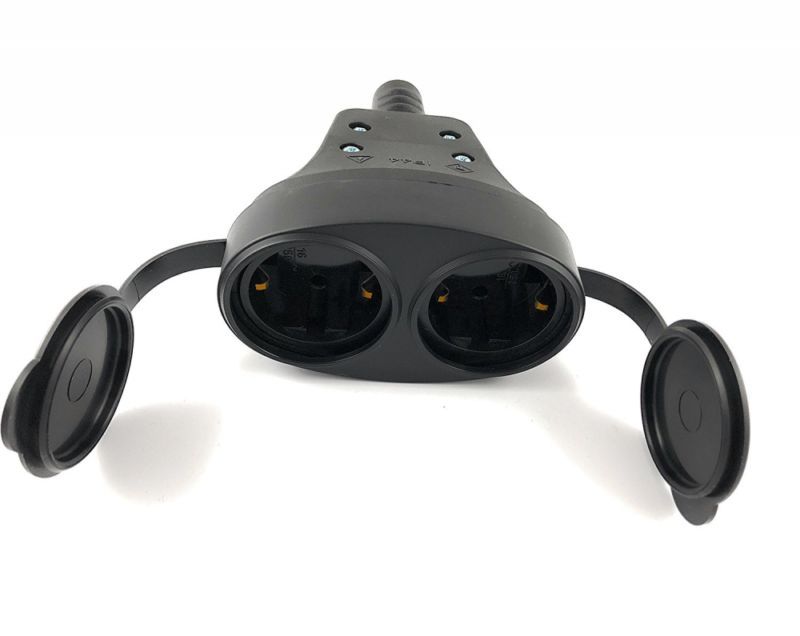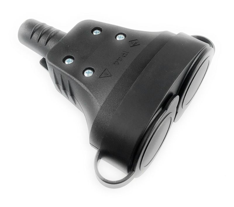 2- Wege Gummi Schuko Kupplung mit Abdeckkappen IP 44 Hergestellt in der EU