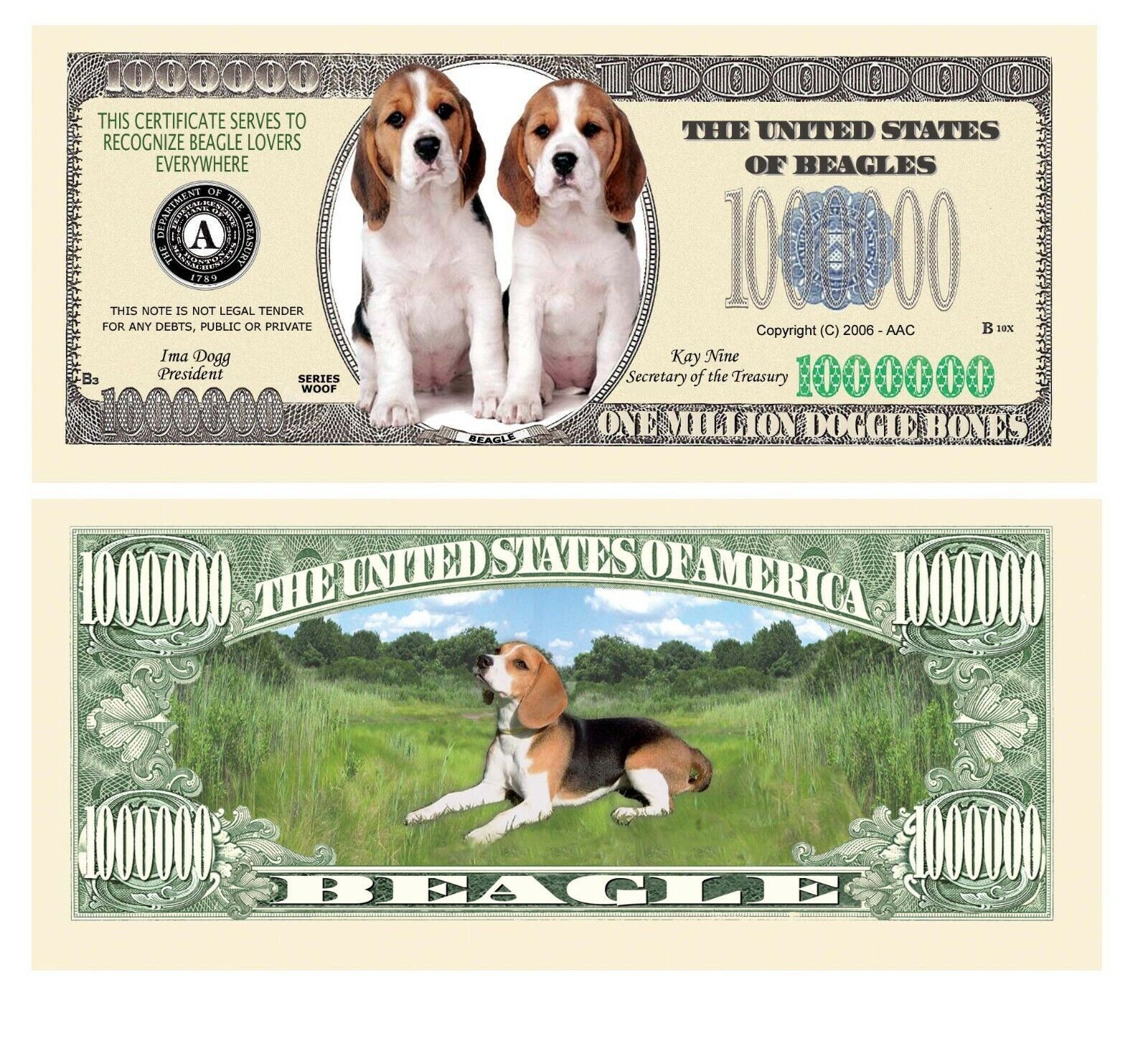 2 x 1 Million Dollar Sammelscheine aus den USA Beagle Dog Technische Information zum Artikel Material: Papier Größe: ca. original Größe Erhaltung: Neu Neu, glatt und ohne Falten, ohne Hörner Das ideale Geschenk oder natürlich auch zum selber sammeln Natürlich handelt es sich hier nicht um echtes Gel