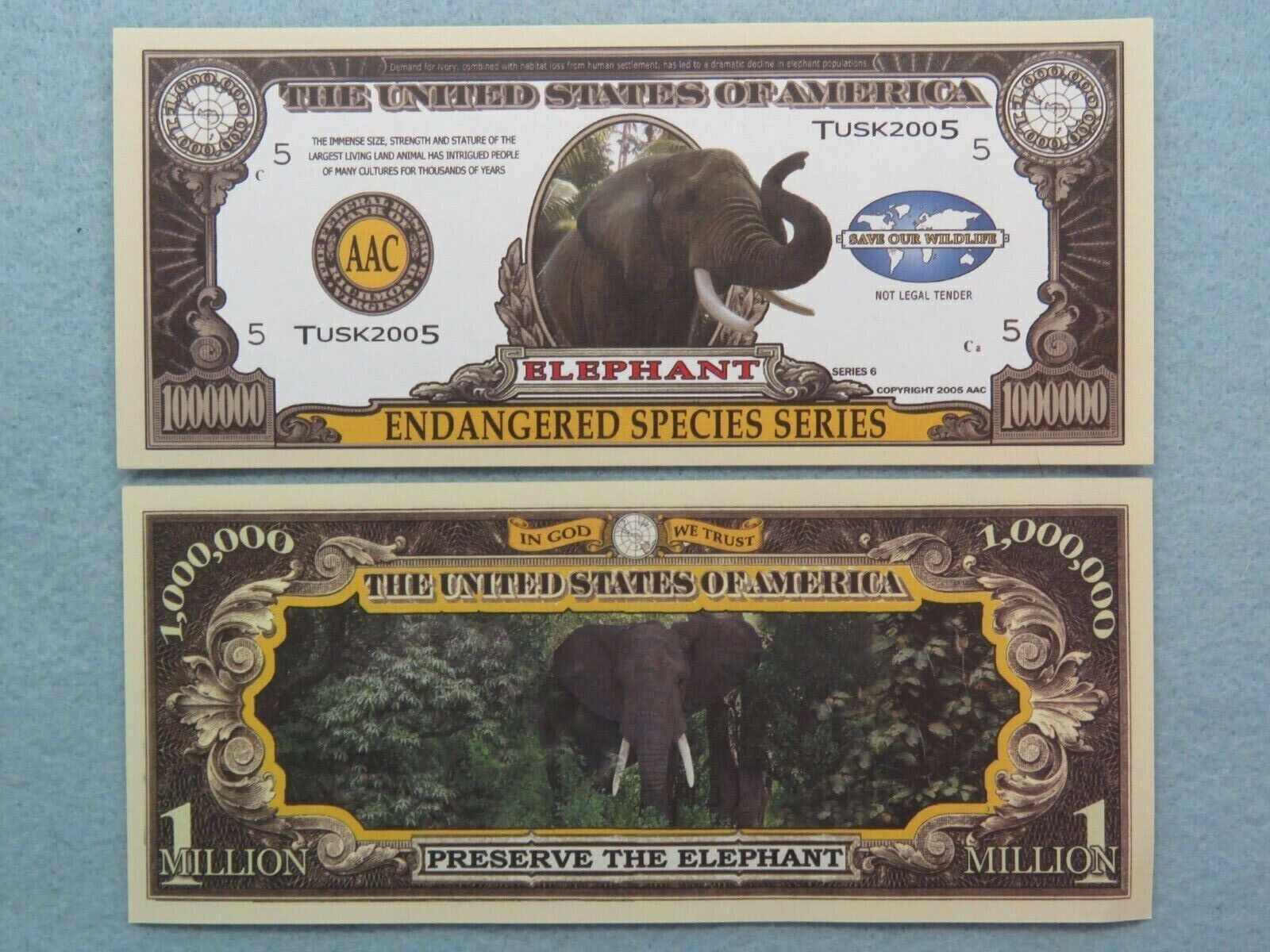 2 x 1 Million Dollar Sammelscheine Elephante Elefant Technische Information zum Artikel Material: Papier Größe: ca. original Größe Erhaltung: Neu Neu, glatt und ohne Falten, ohne Hörner Das ideale Geschenk oder natürlich auch zum selber sammeln Natürlich handelt es sich hier nicht um echtes Geld son
