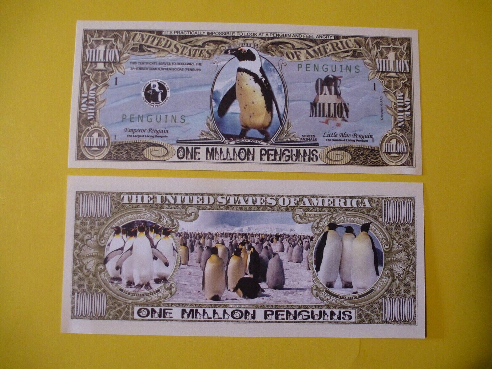2 x 1 Million Dollar Sammelscheine Penguins Pinguin Technische Information zum Artikel Material: Papier Größe: ca. original Größe Erhaltung: Neu Neu, glatt und ohne Falten, ohne Hörner Das ideale Geschenk oder natürlich auch zum selber sammeln Natürlich handelt es sich hier nicht um echtes Geld sond