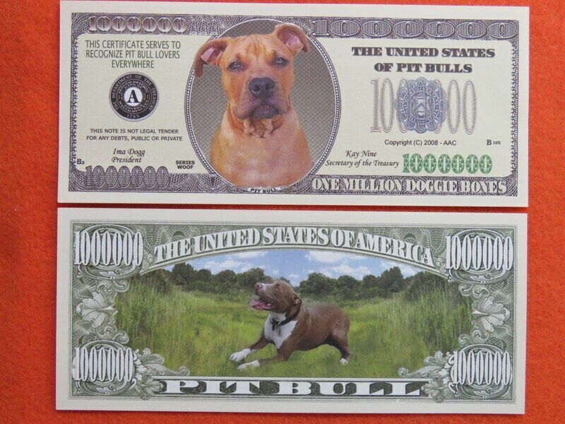 2 x 1 Million Dollar Sammelscheine Pit Bull Hunde Technische Information zum Artikel Material: Papier Größe: ca. original Größe Erhaltung: Neu Neu, glatt und ohne Falten, ohne Hörner Das ideale Geschenk oder natürlich auch zum selber sammeln Natürlich handelt es sich hier nicht um echtes Geld sonder