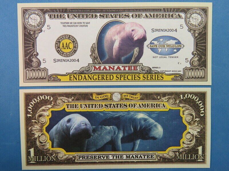 2 x 1 Million Dollar Sammelschein Manatee Technische Information zum Artikel Material: Papier Größe: ca. original Größe Erhaltung: Neu Neu, glatt und ohne Falten, ohne Hörner Das ideale Geschenk oder natürlich auch zum selber sammeln Natürlich handelt es sich hier nicht um echtes Geld sondern nur um