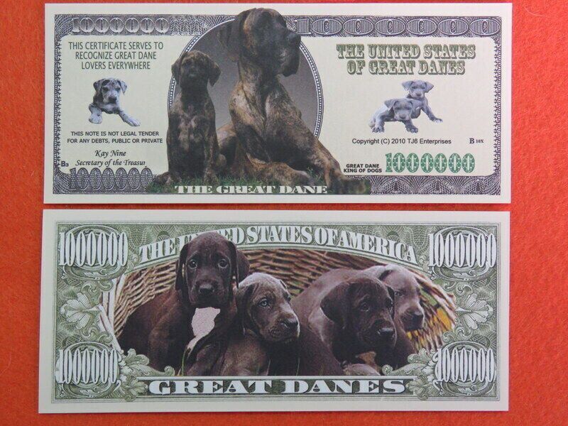 2 x 1 Million Dollar Sammelschein Dane Dog Dogge Hund Technische Information zum Artikel Material: Papier Größe: ca. original Größe Erhaltung: Neu Neu, glatt und ohne Falten, ohne Hörner Das ideale Geschenk oder natürlich auch zum selber sammeln Natürlich handelt es sich hier nicht um echtes Geld so
