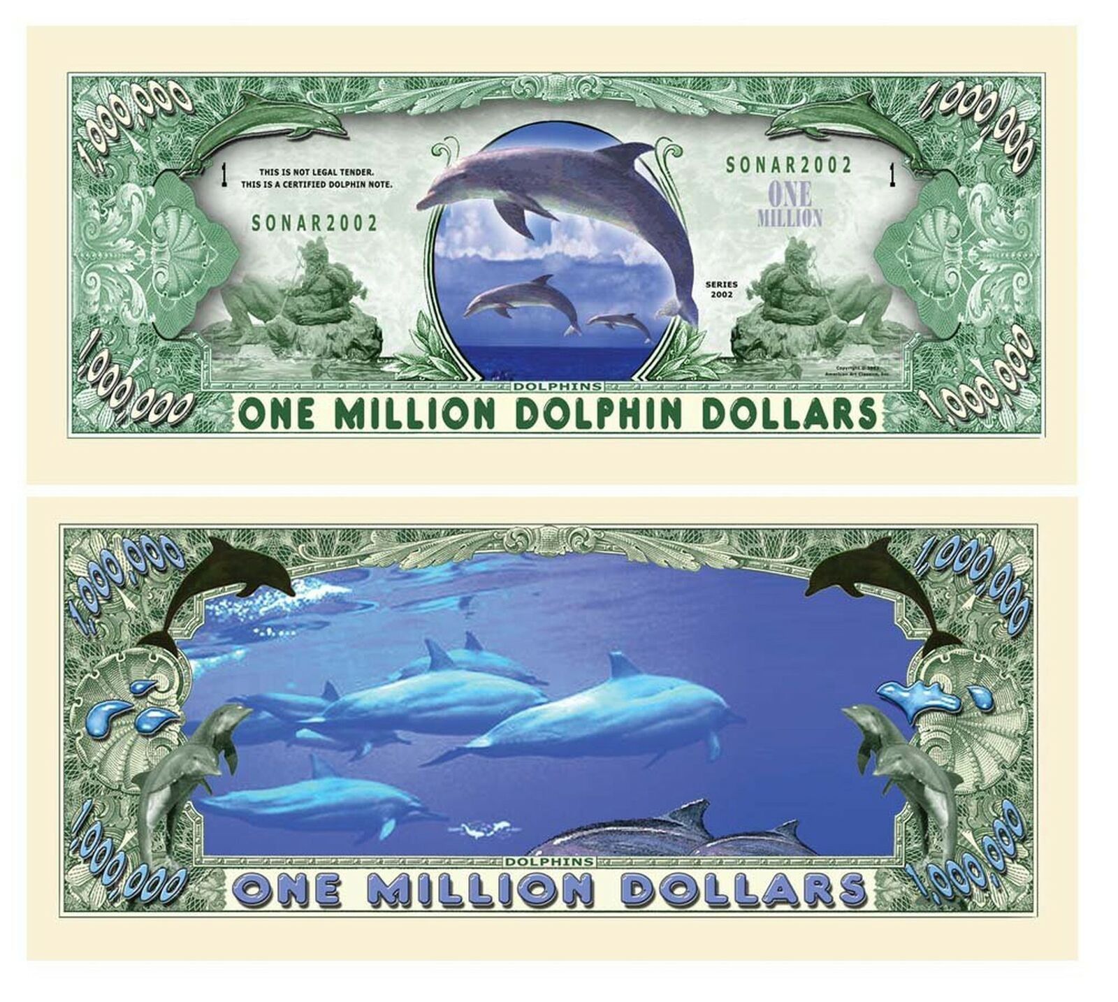 2 x 1 Million Dollar Sammelscheine aus den USA Delfine Technische Information zum Artikel Material: Papier Größe: ca. original Größe Erhaltung: Neu Neu, glatt und ohne Falten, ohne Hörner Das ideale Geschenk oder natürlich auch zum selber sammeln Natürlich handelt es sich hier nicht um echtes Geld s